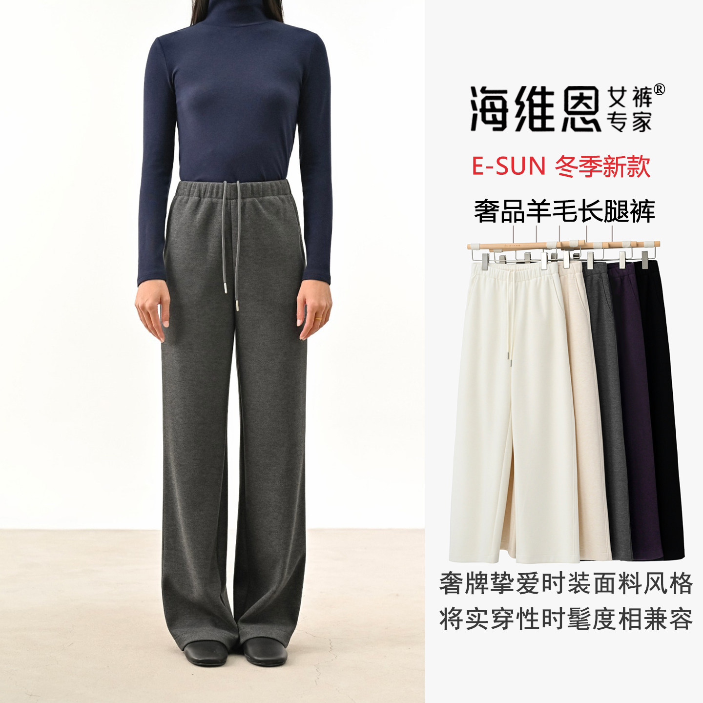📚 seawhen海维恩 新款气质显瘦简约牦牛羊毛绒加厚窄版直筒裤女3682