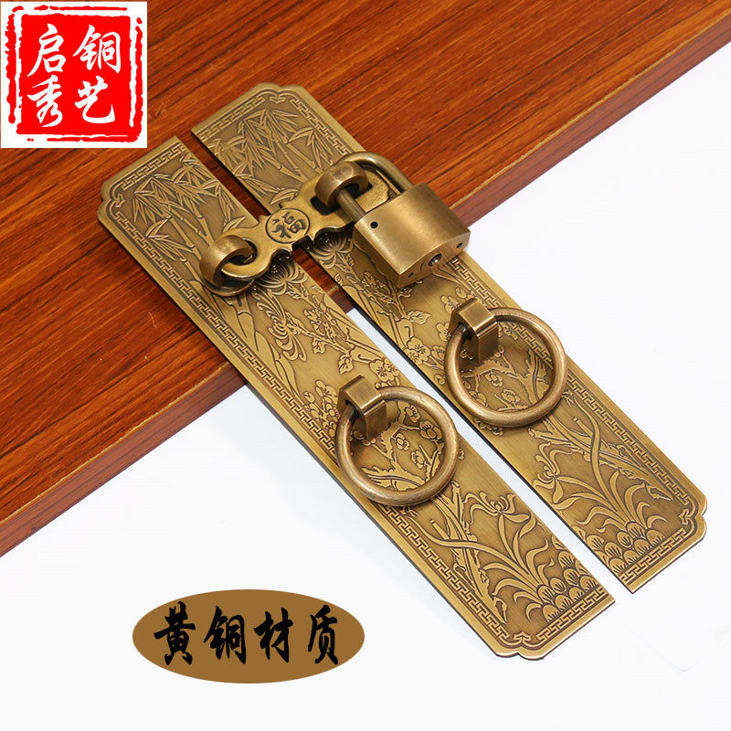 📚 新中式纯铜梅兰竹菊锁q扣门锁庭院花格门铜拉手老式挂实木仿古把