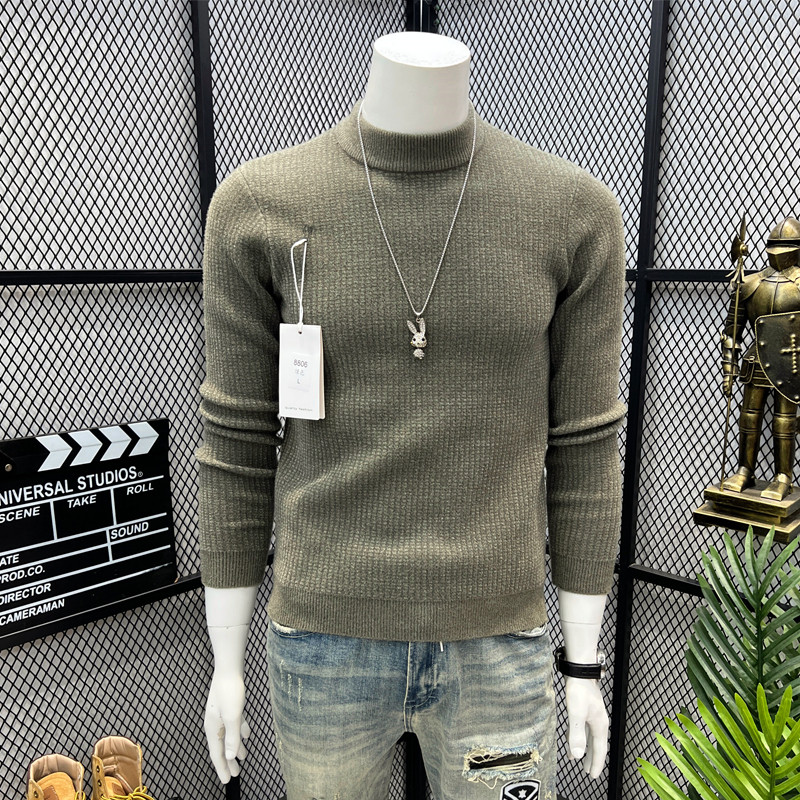📚 基础黑色毛衣男秋冬季加厚圆领保暖针织青年半高领纯色休闲打底衫