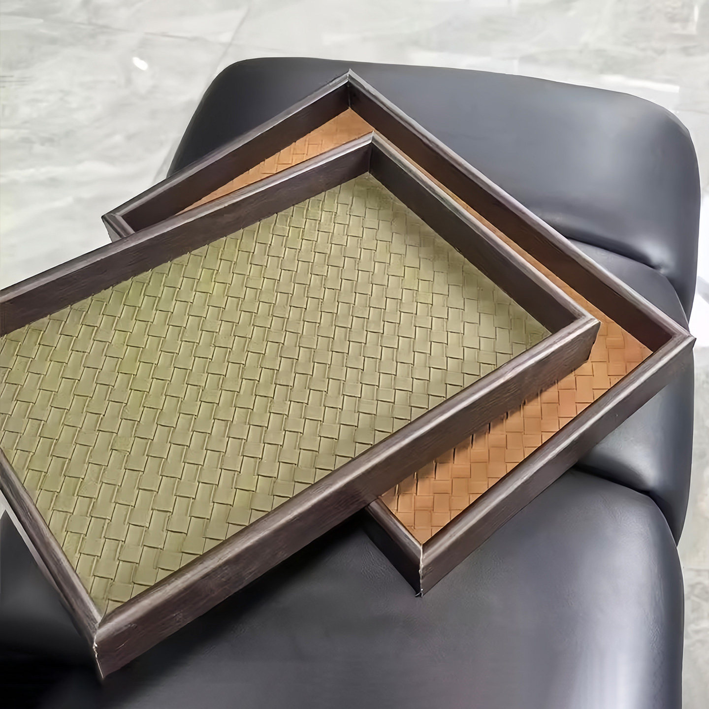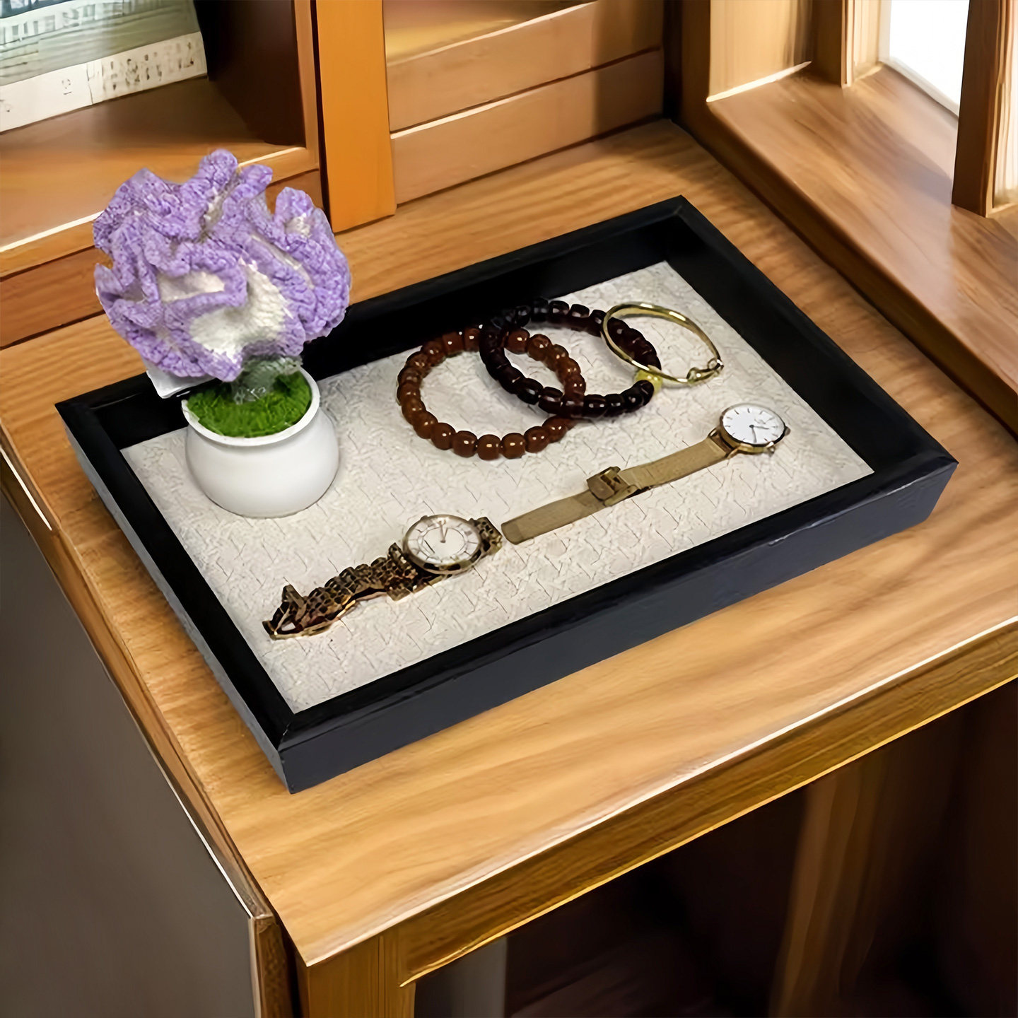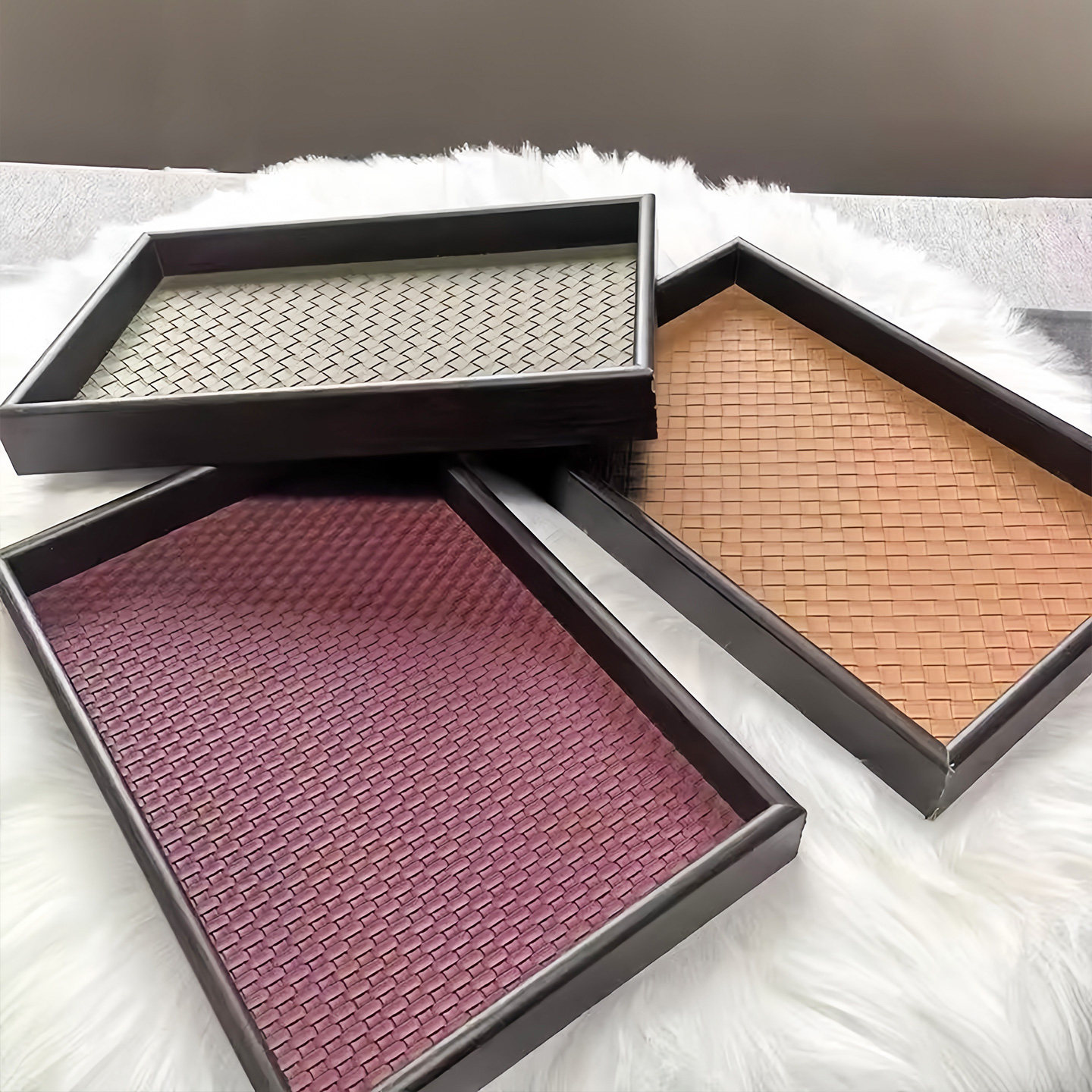 📚 木质托盘轻奢饰品收纳戒指项链托盘皮革竹绿色复古桌面展示货盘