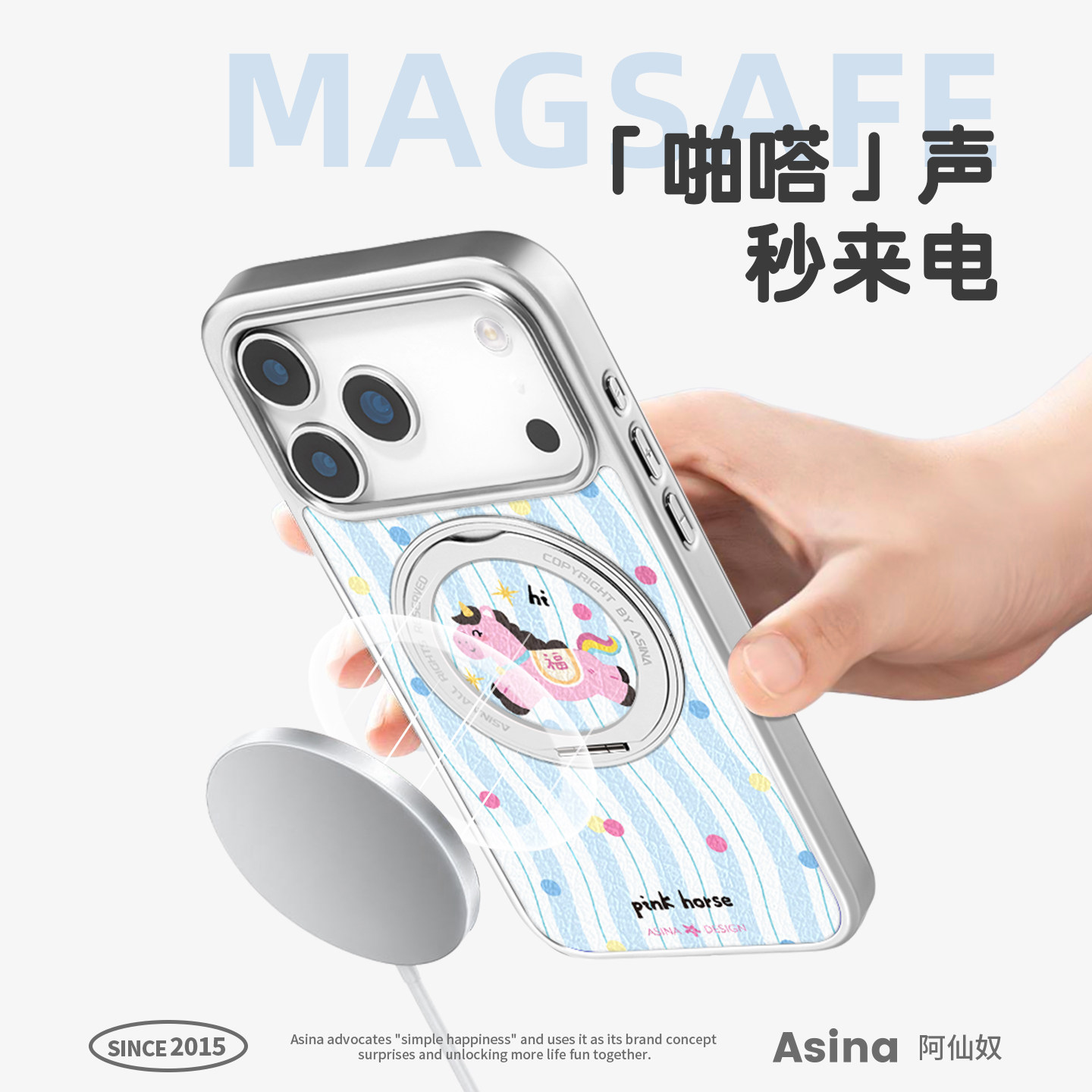 📚 欢乐小马适用苹果17Promax手机壳新款iPhone16Pro磁吸带支架保护套Co2支点ip15可爱高级感14好看13pm全包女