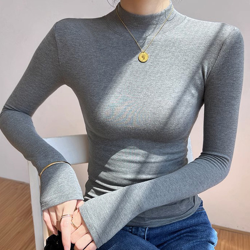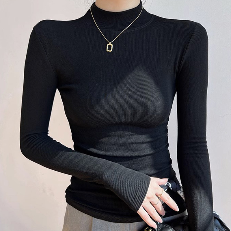 📚 2026春秋新款紧身半高领长袖洋气t恤女打底衫内搭莫代尔中领上衣