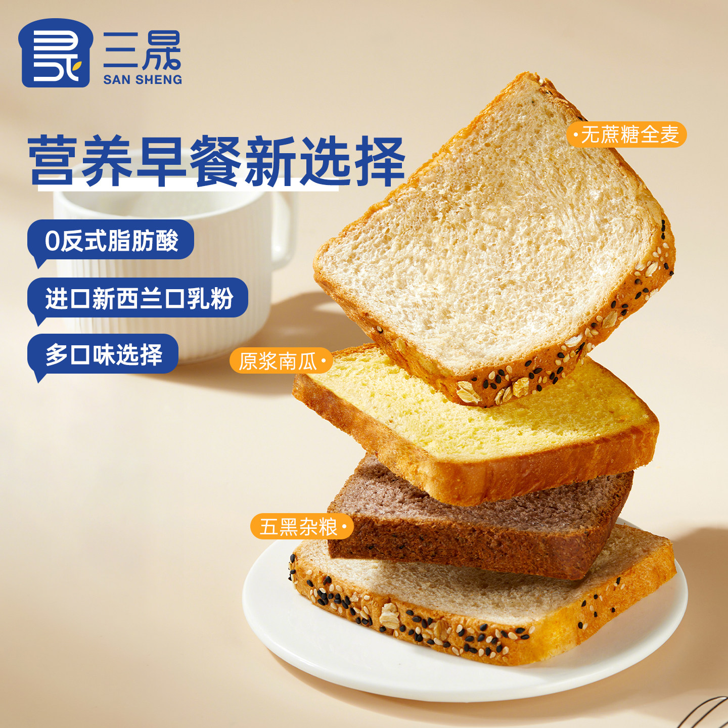 📚 三晟面包全麦无蔗糖谷物南瓜切片吐司糕点营养早餐下午茶点心食品