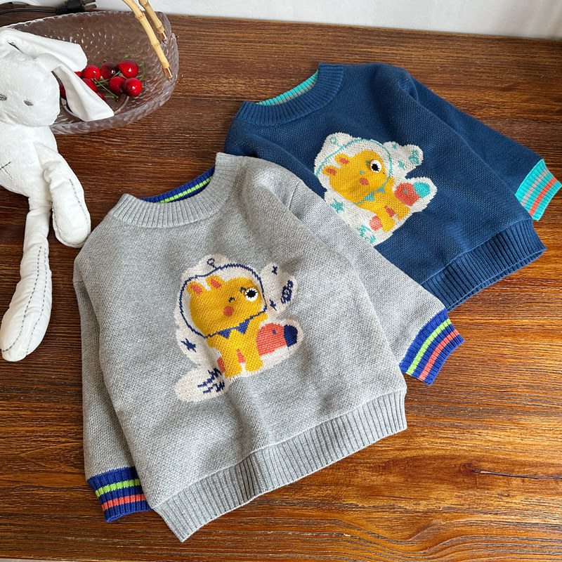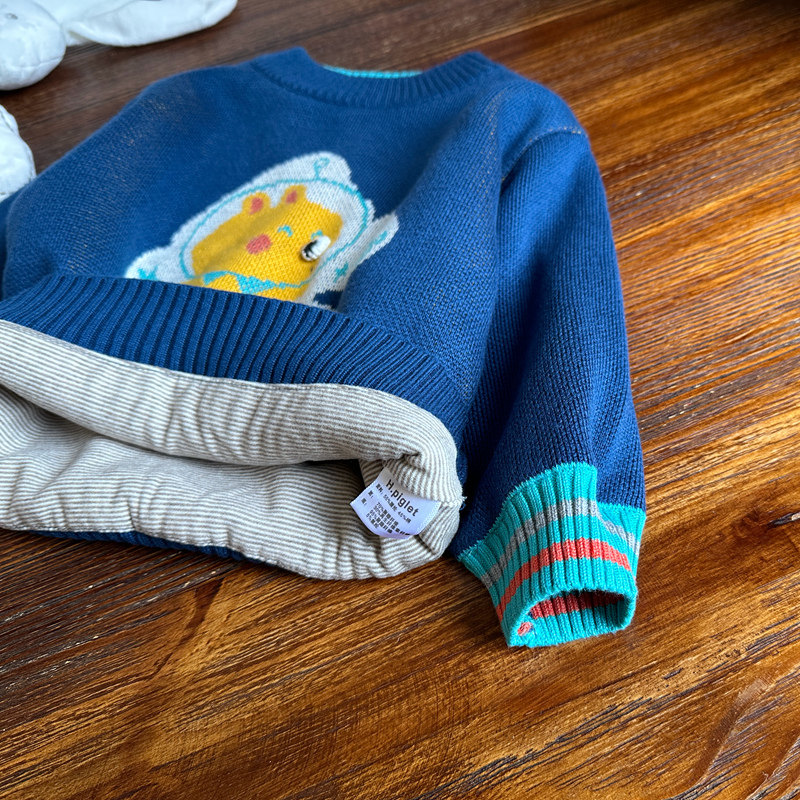 📚 特价冬季小乐猪男童保暖双层毛衣宝宝棉线加厚热力绒内衬针织上衣