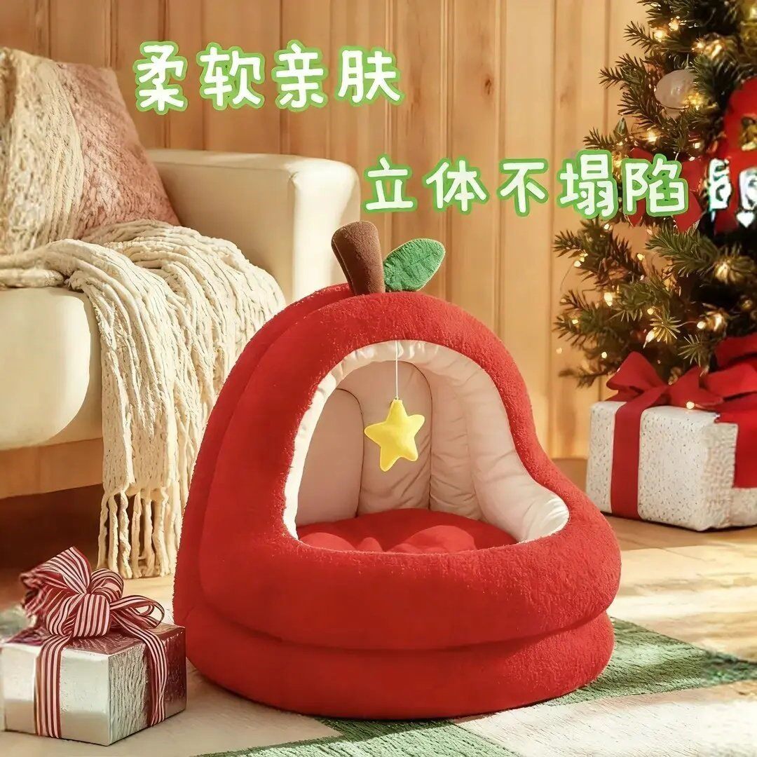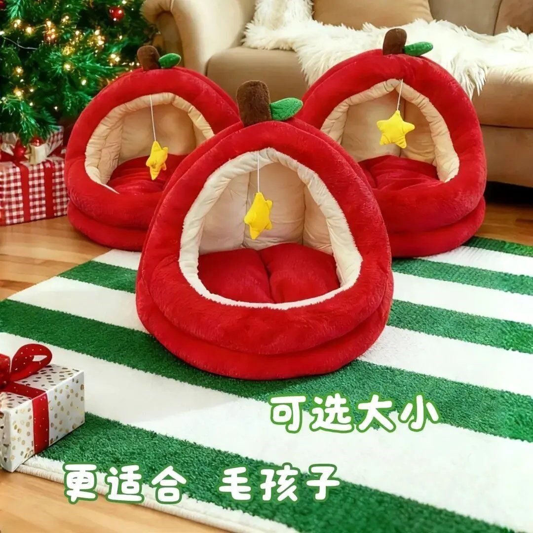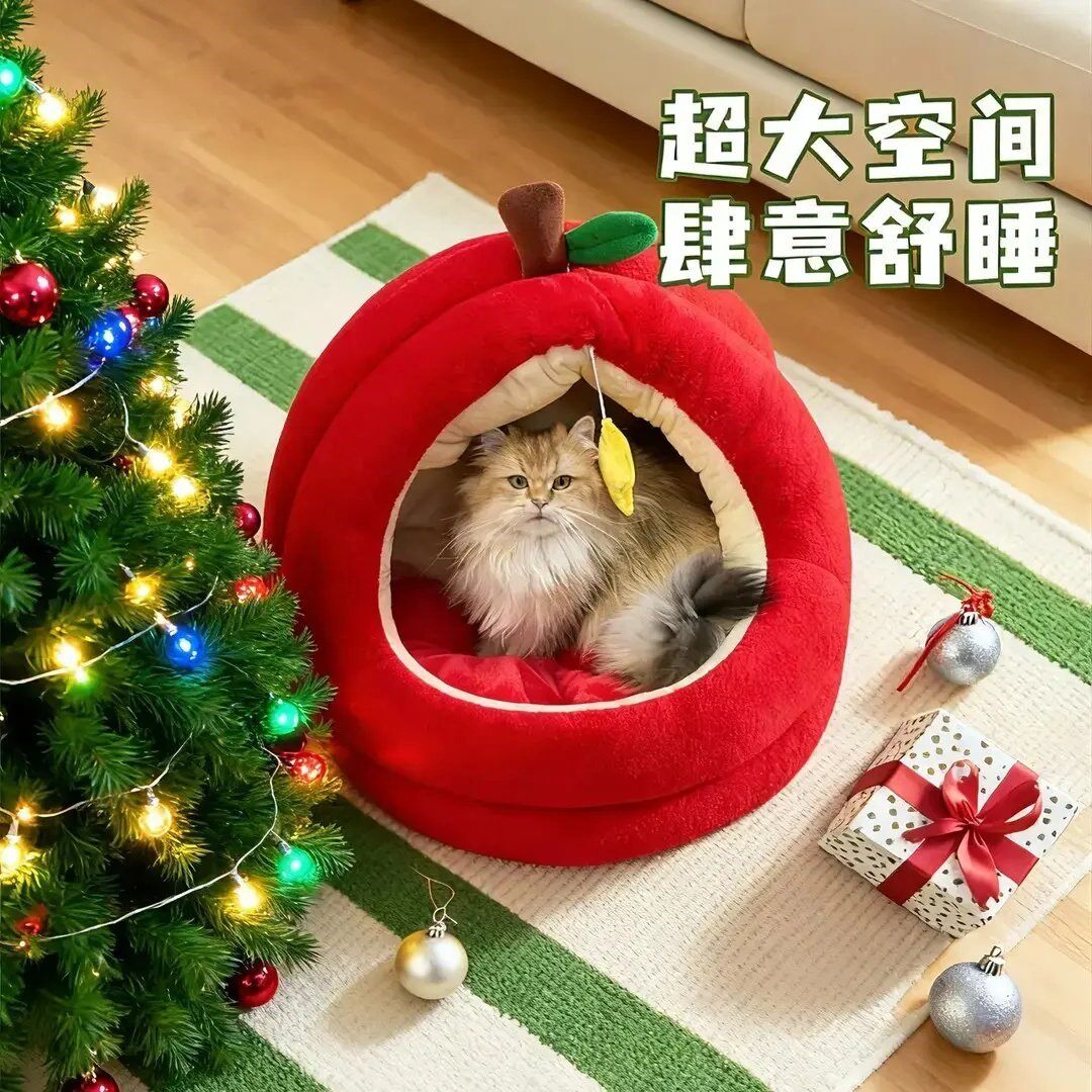 📚 苹果猫窝冬季保暖猫咪半封闭式加厚猫床狗窝四季通用冬天宠物猫窝