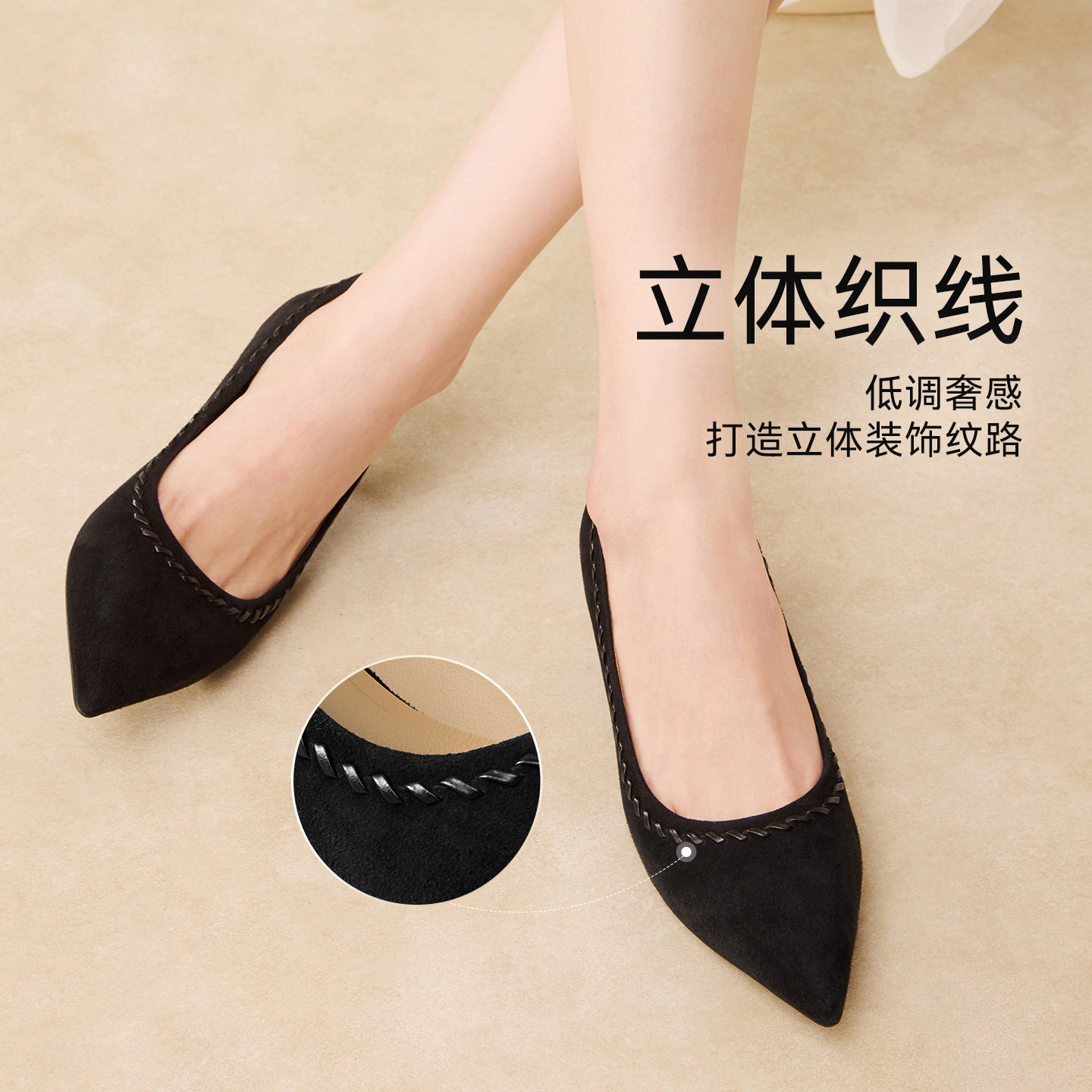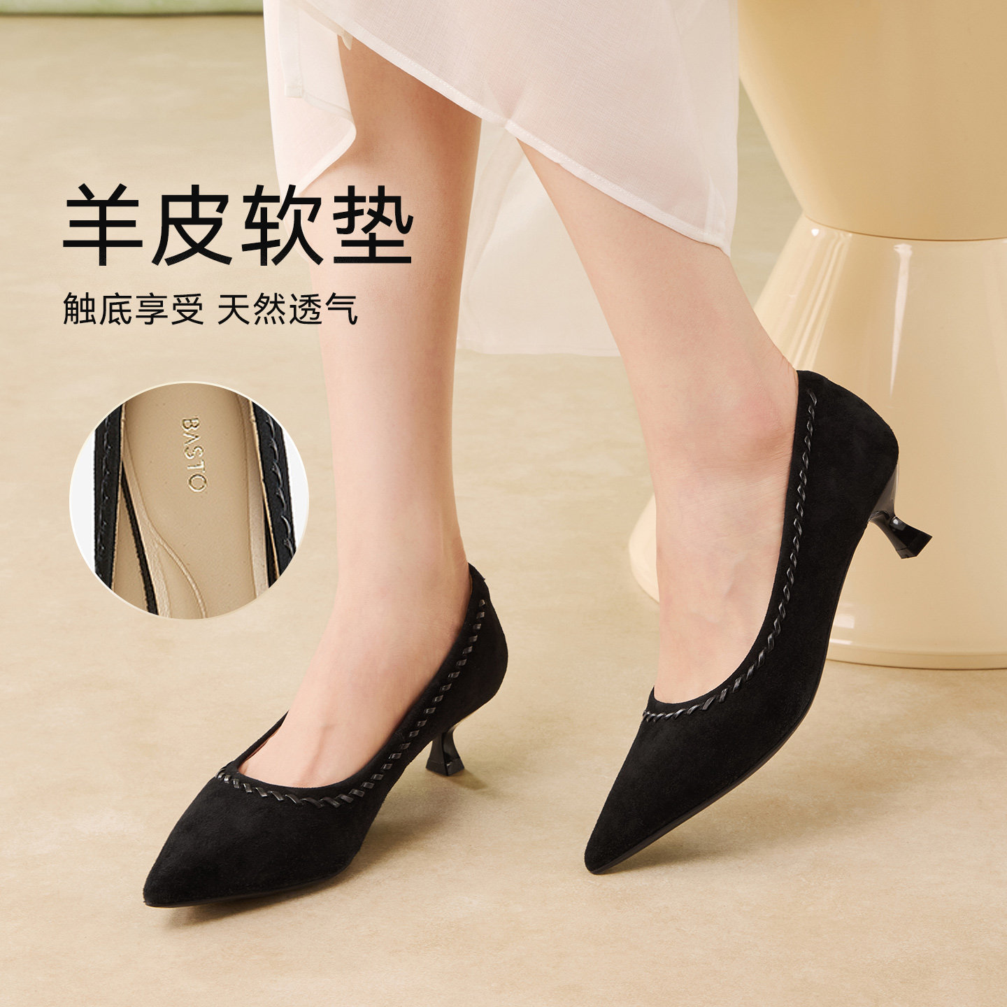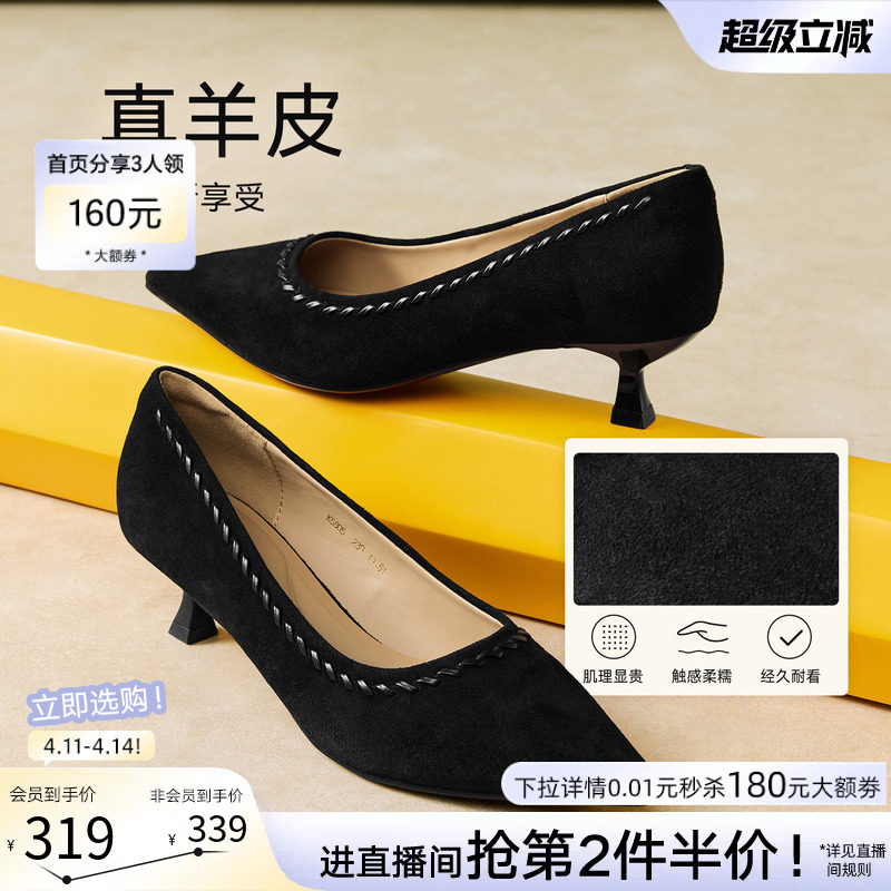 📚 百思图2026春商场新款气质羊皮绒面细跟高跟鞋尖头女单鞋K5805AQ6