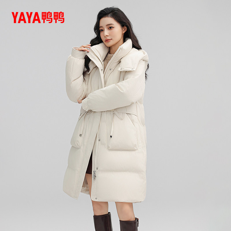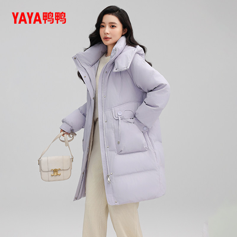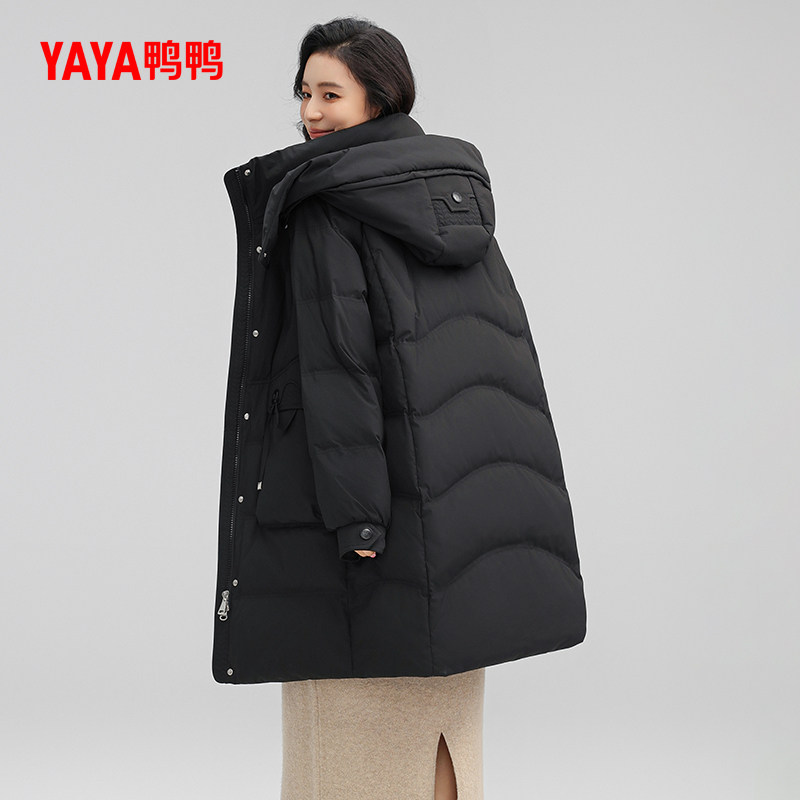 📚 鸭鸭羽绒服女士2025冬季新品中长款时尚百搭可拆帽保暖休闲外套J