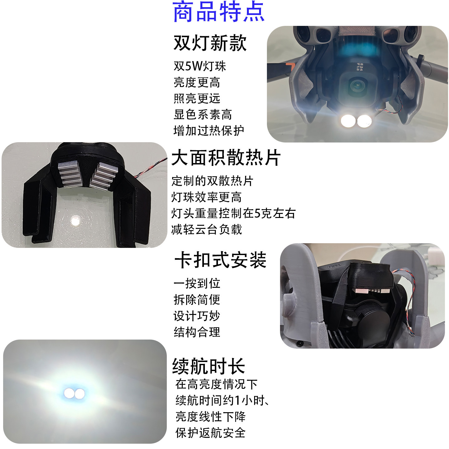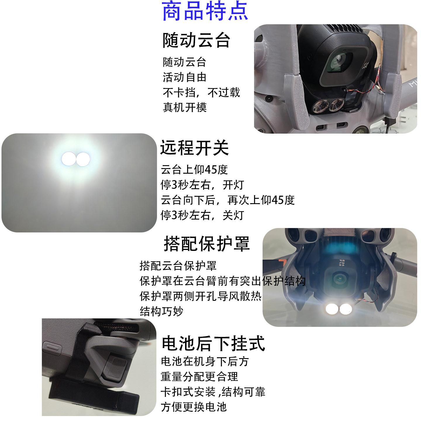 📚 适用于Mini5Pro云台灯新款双灯随动云台远程开关高亮度无人机配件