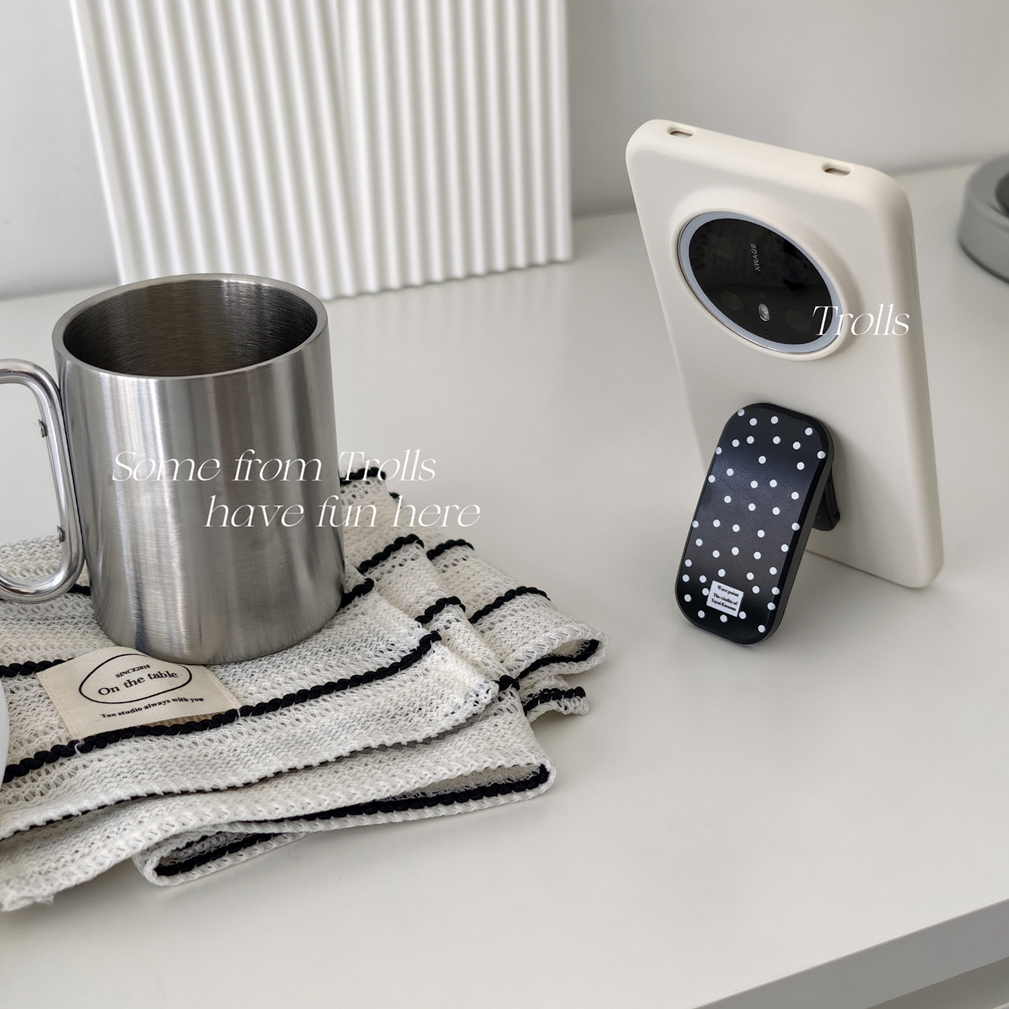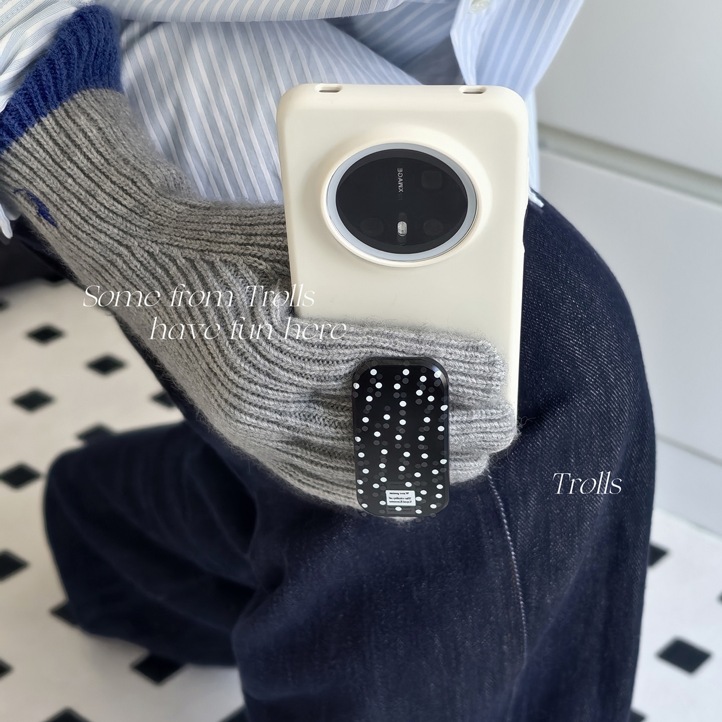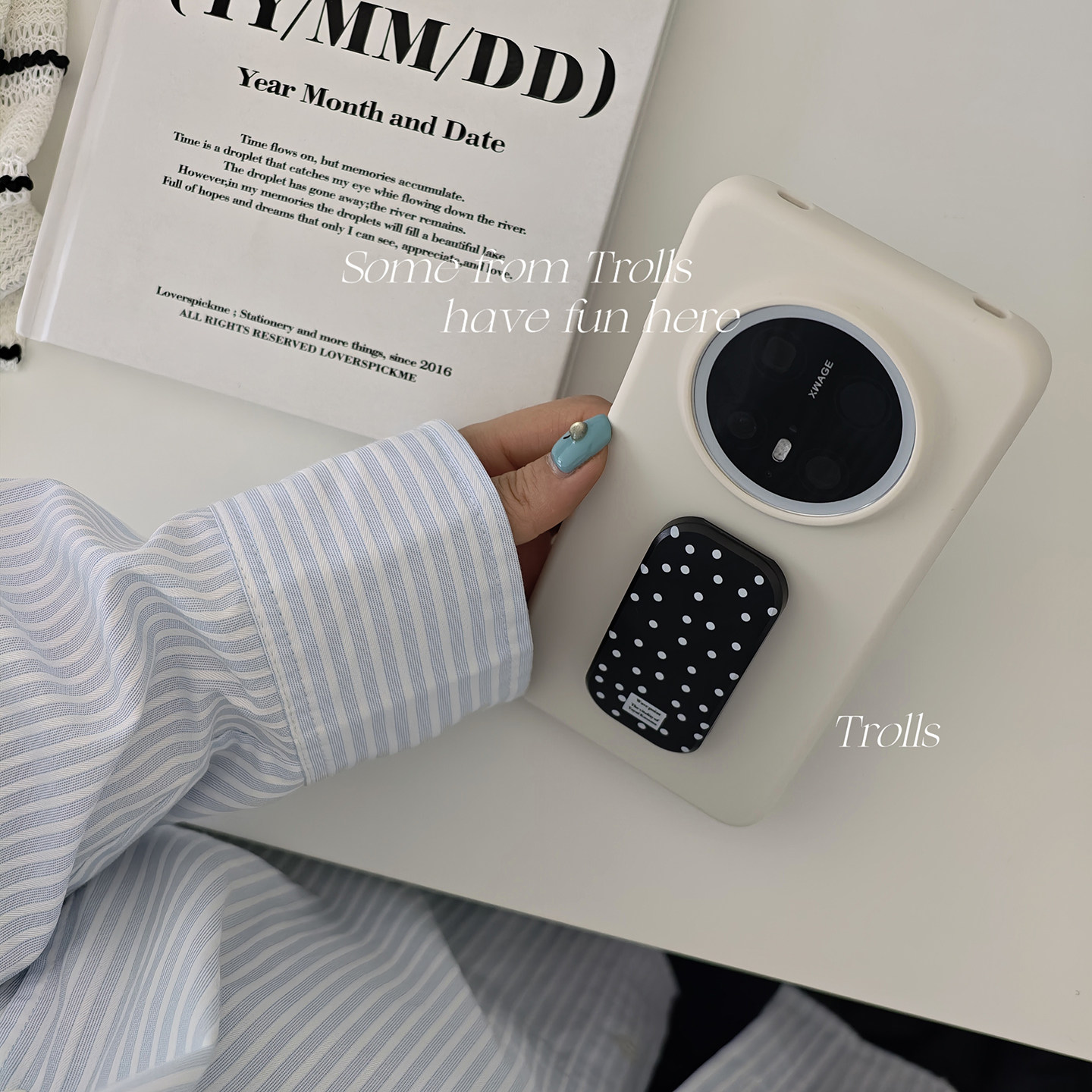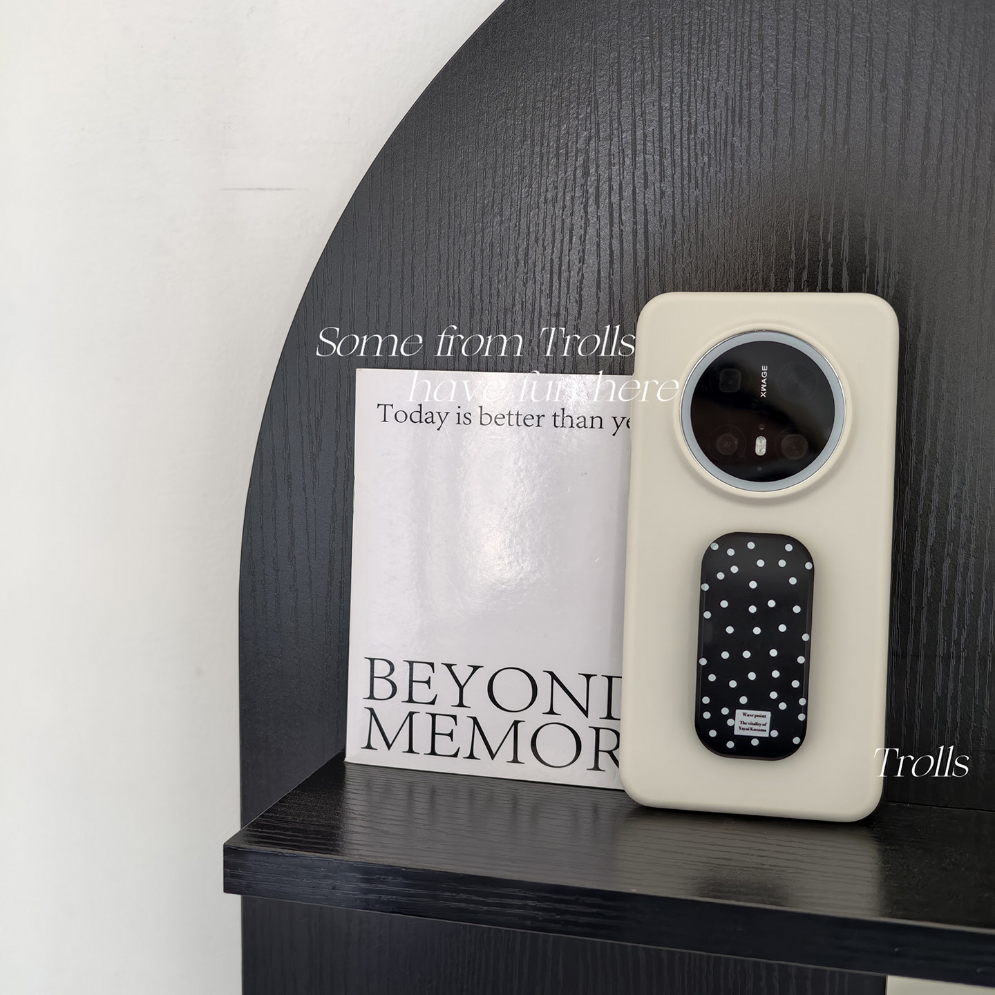📚 Trolls|波点主义 小众ins黑色波点推拉支架简约高级感奶白色液态硅胶手机壳适用华为mate70pro小米17/findx9
