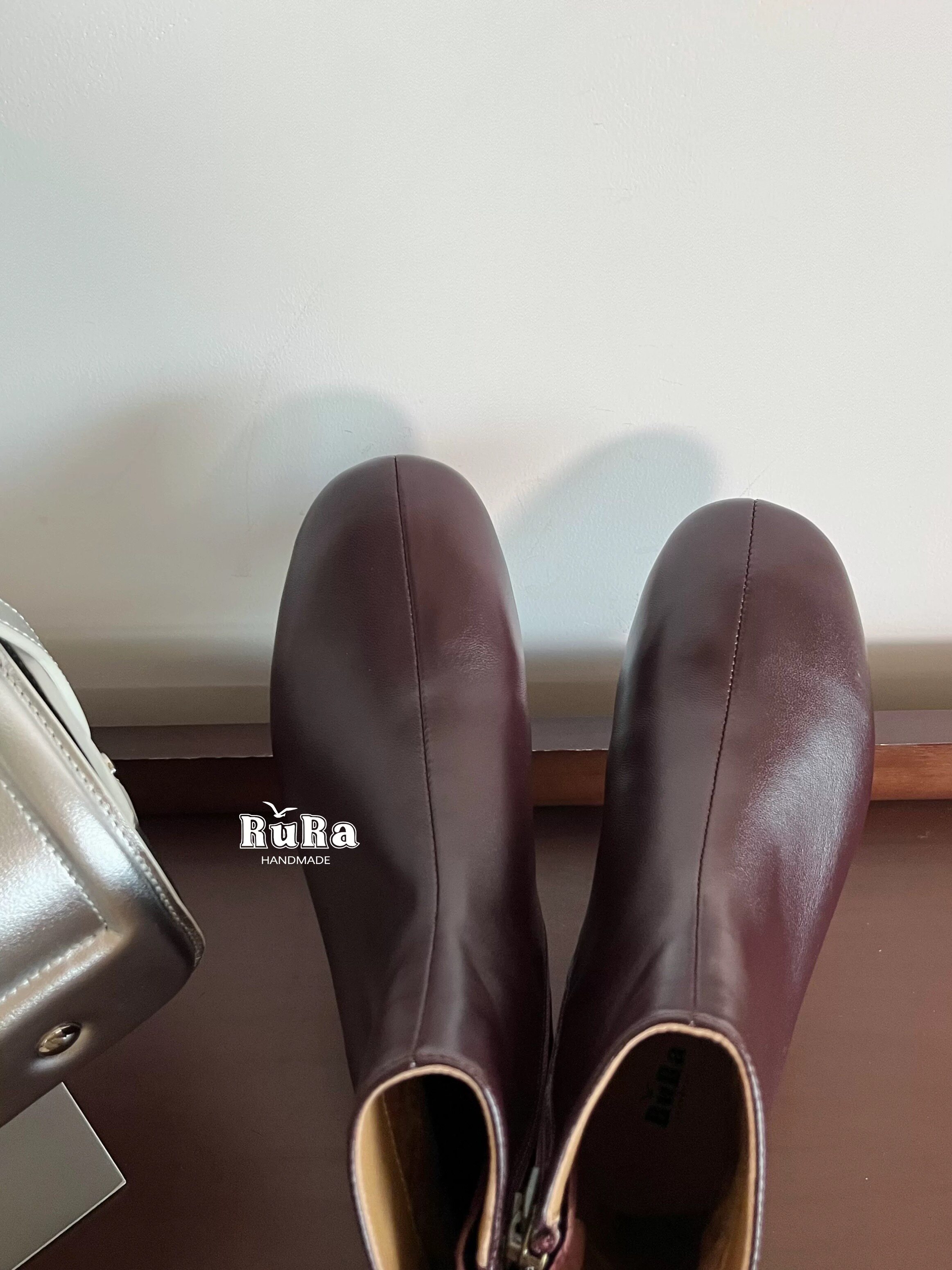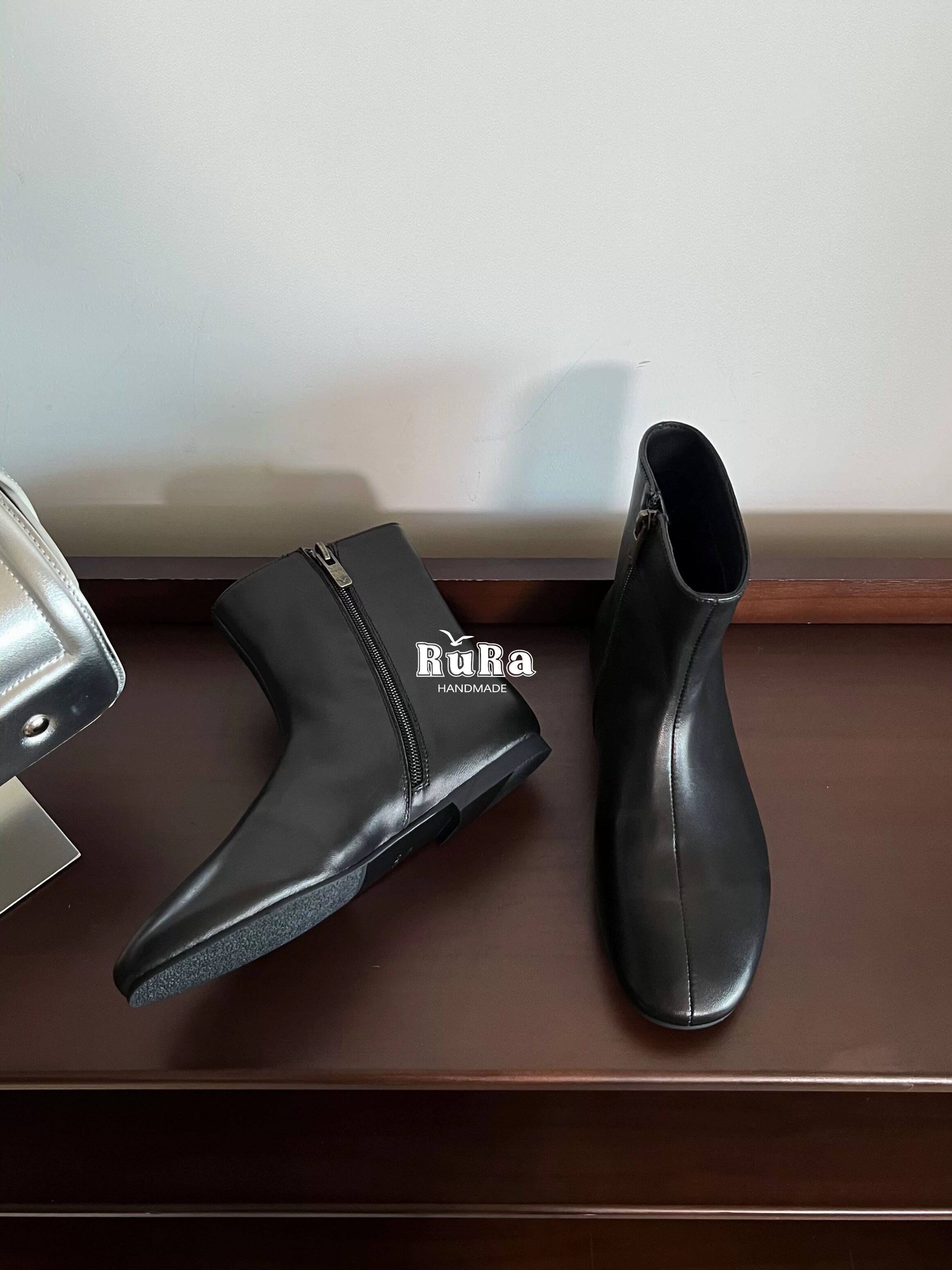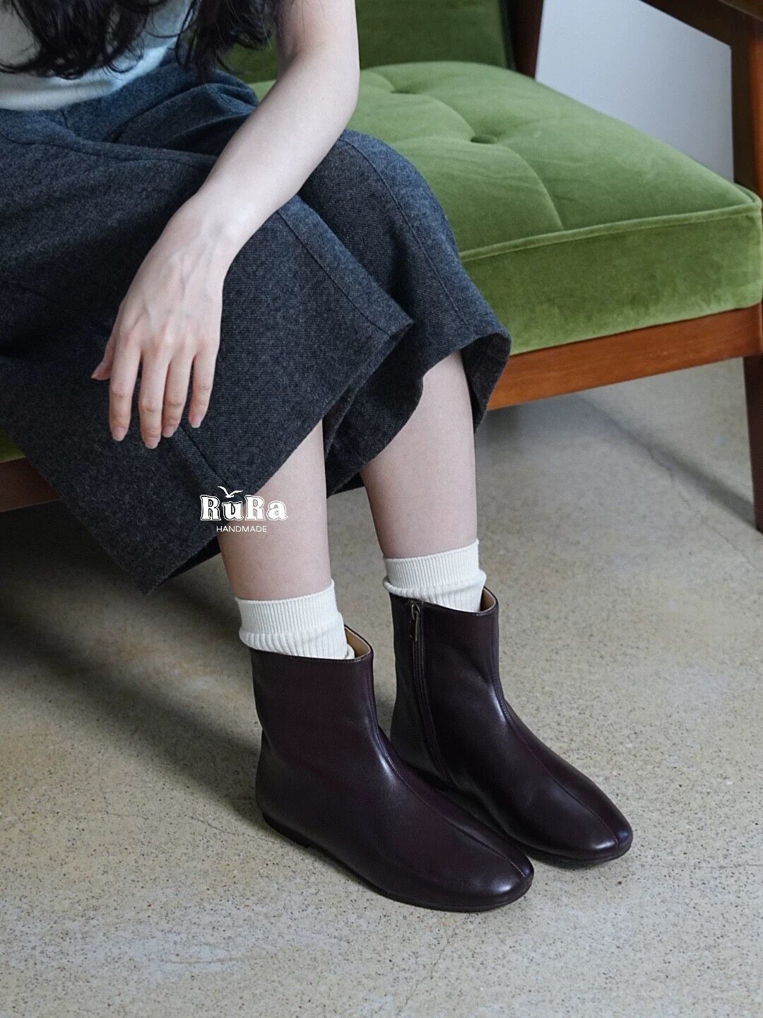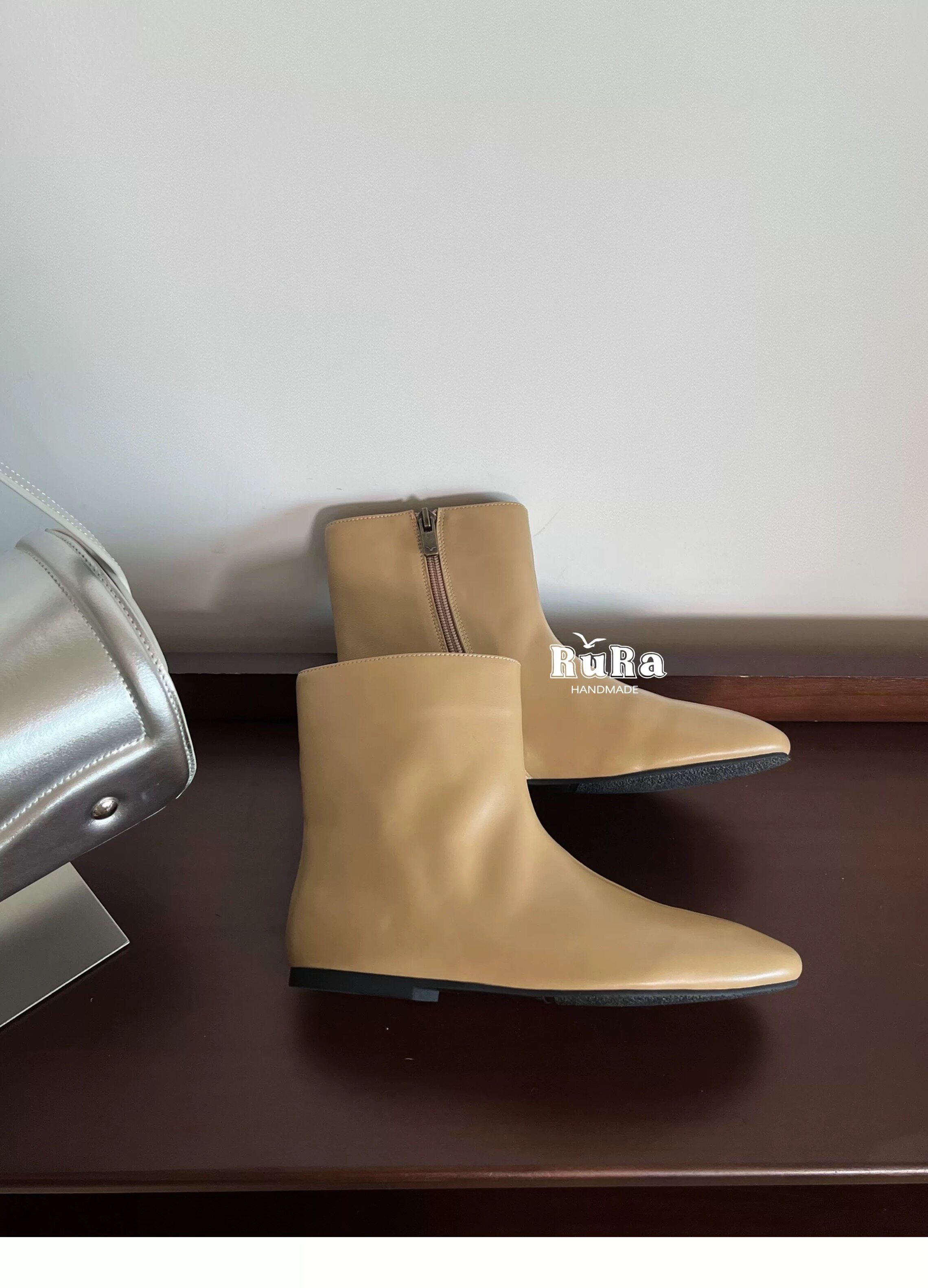 📚 RURA真皮法式气质平头韩系小踝靴百搭咖色翻皮瘦瘦靴平底切尔西