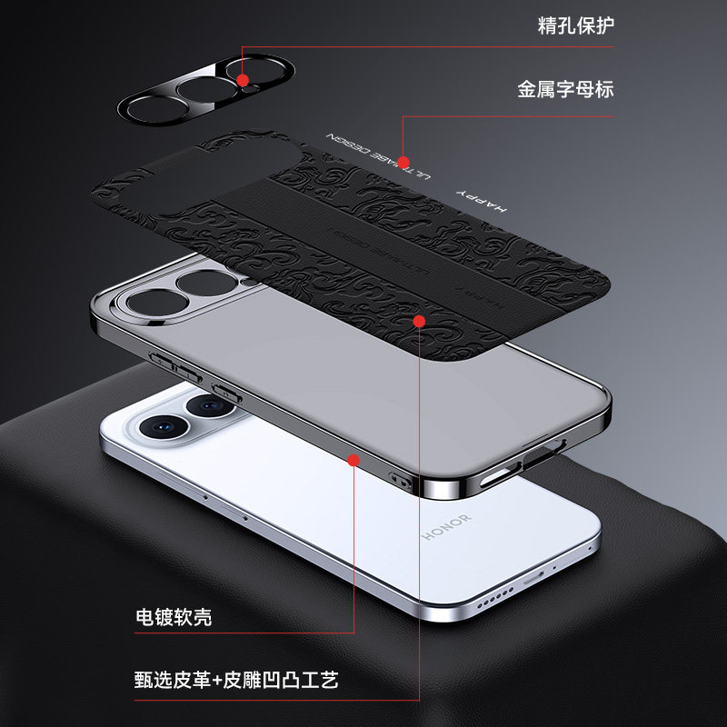 📚 适用华为荣耀500手机壳新款honor500pro龙纹浮雕高端保护套Honor全包防摔五百por男女高级素皮MEY一AN00外壳
