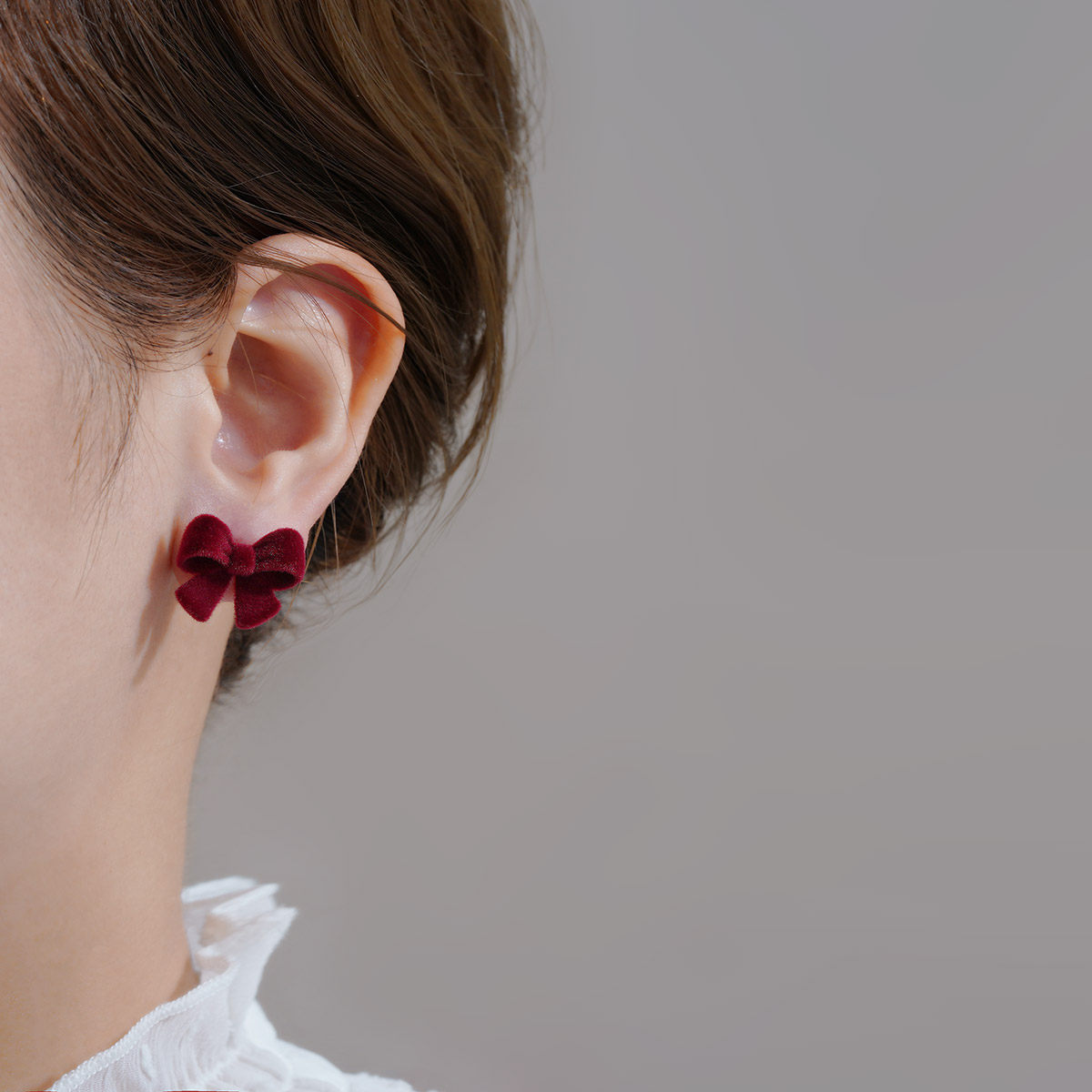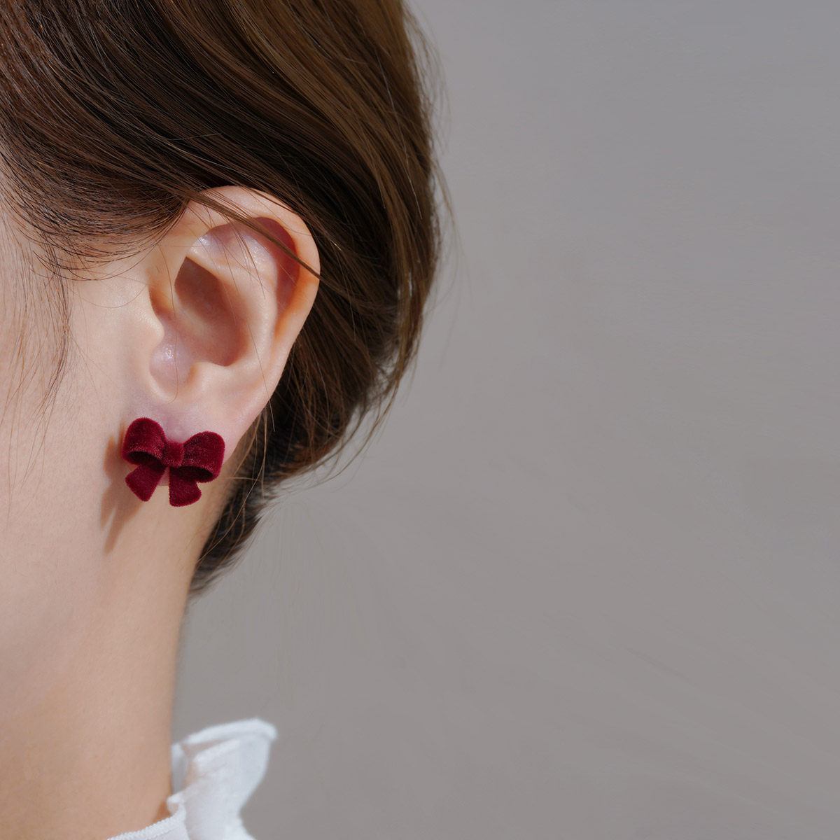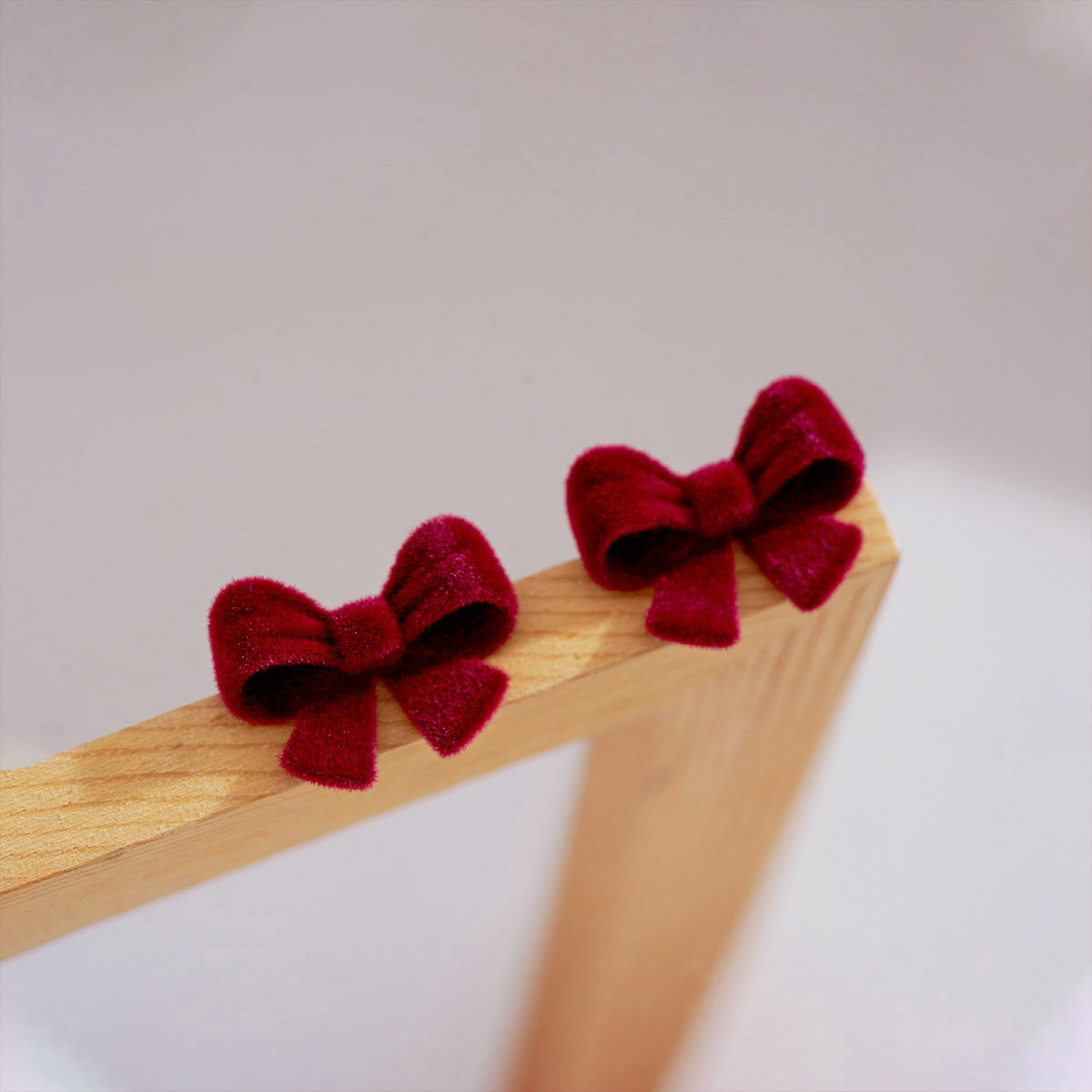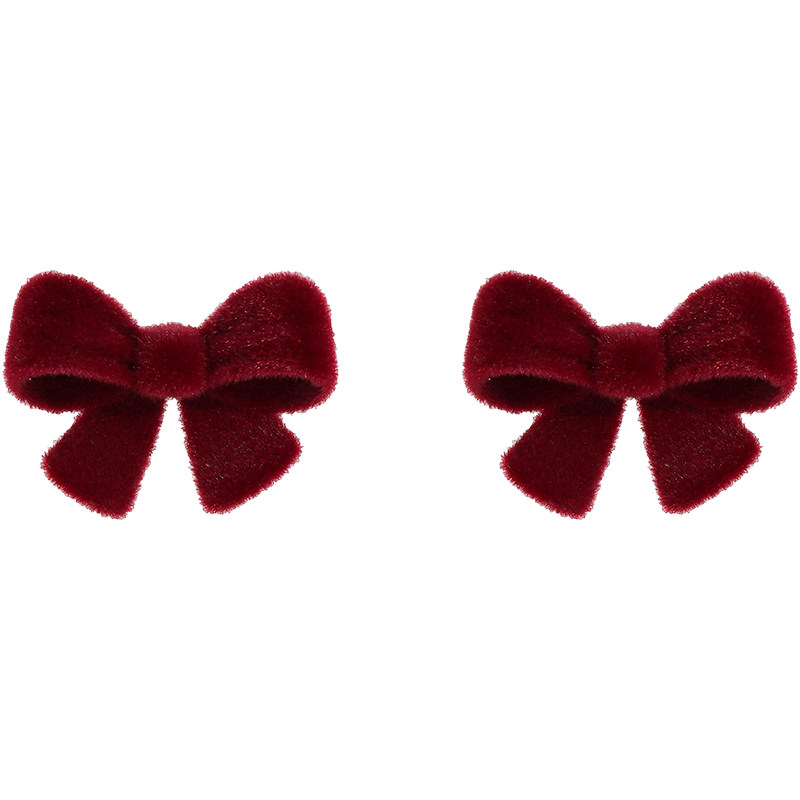 📚 酒红色丝绒蝴蝶结耳环法式安可拉红耳饰高级感小众耳钉2025年新款