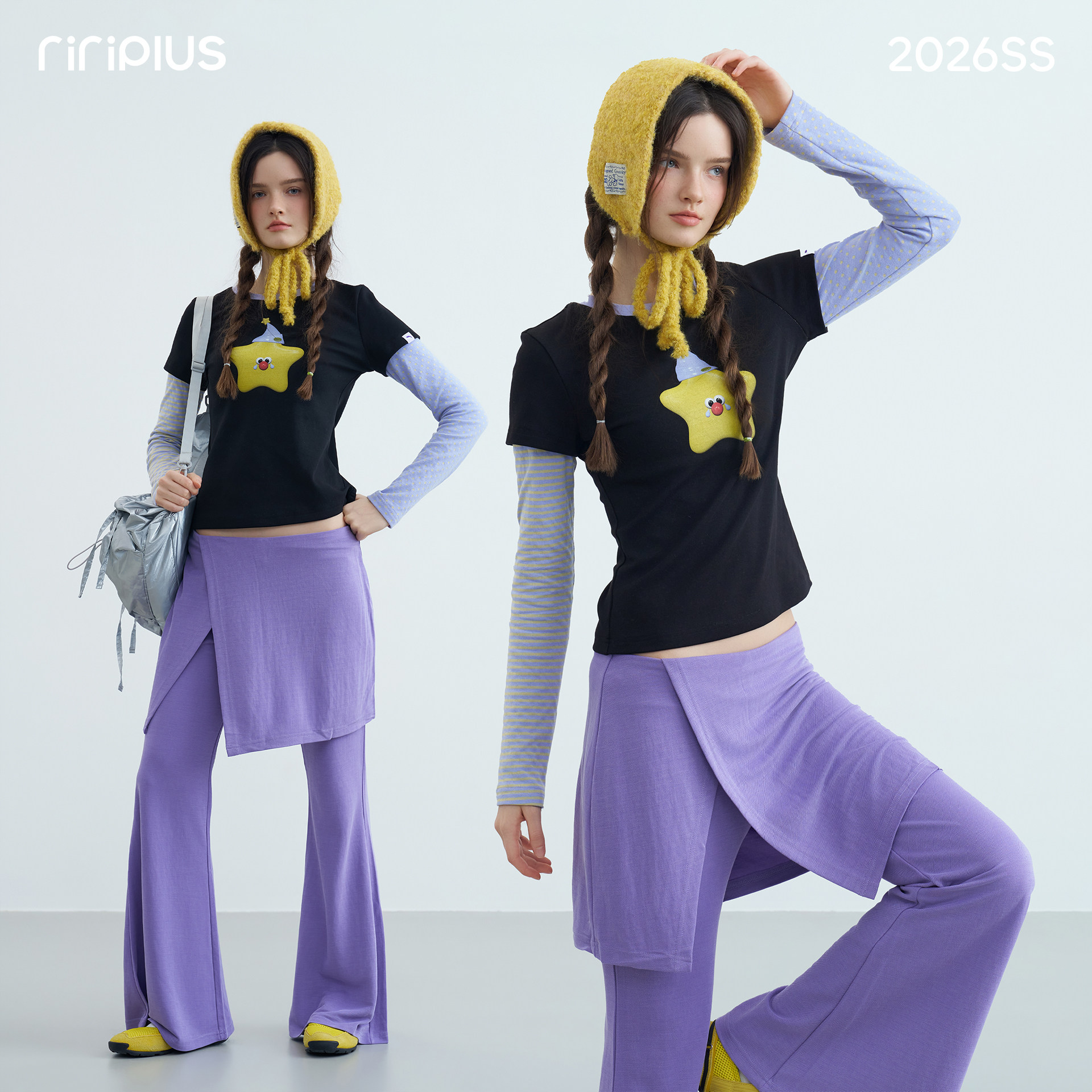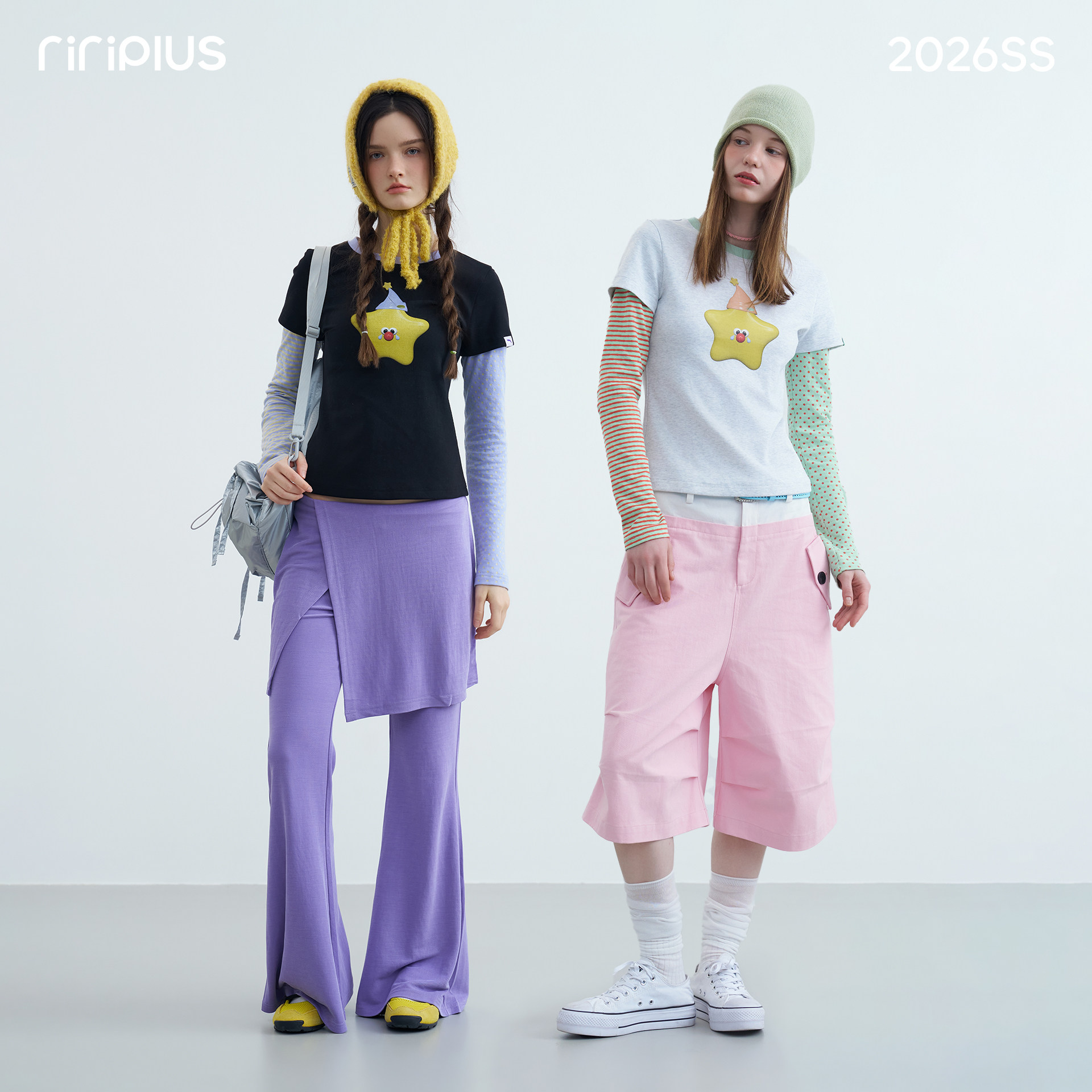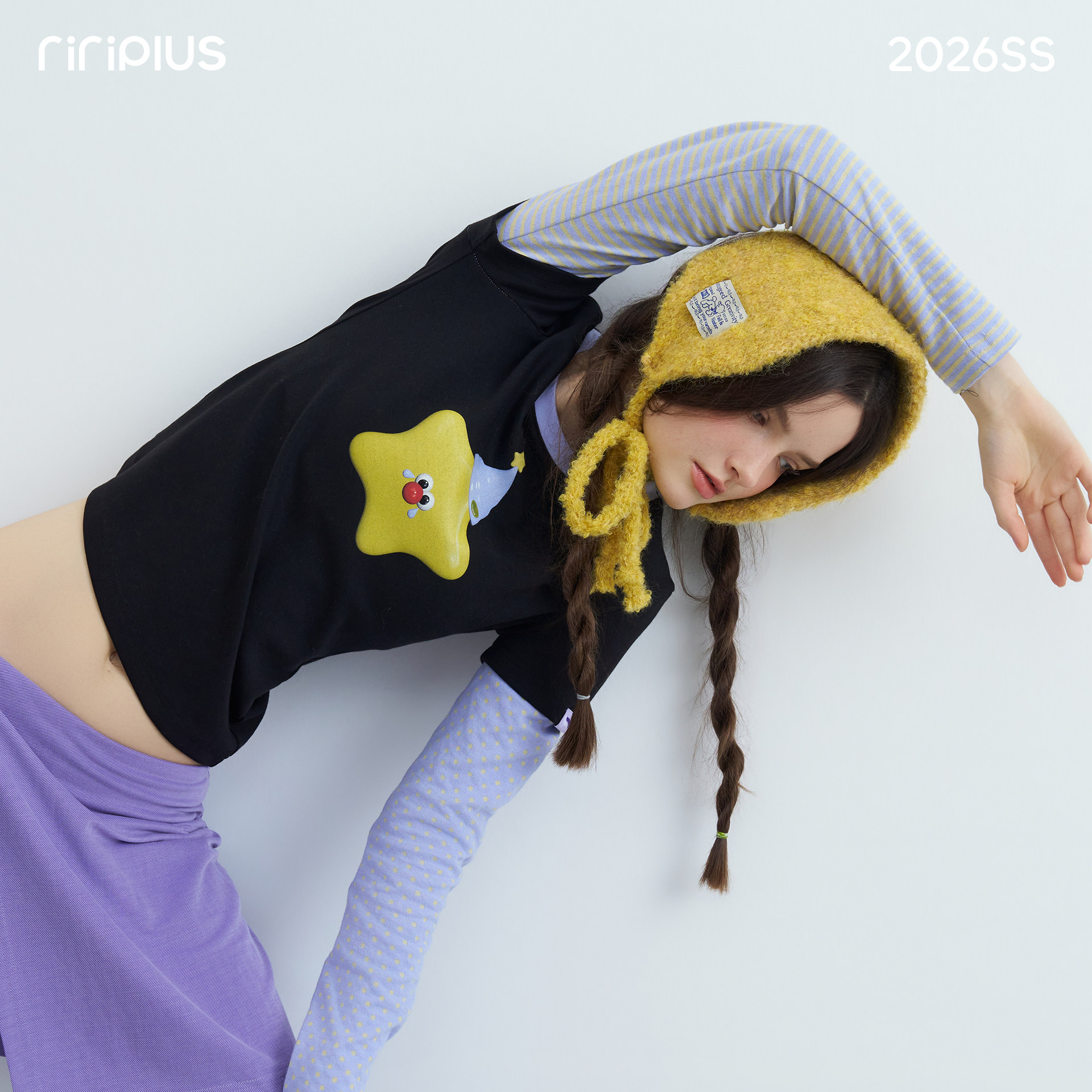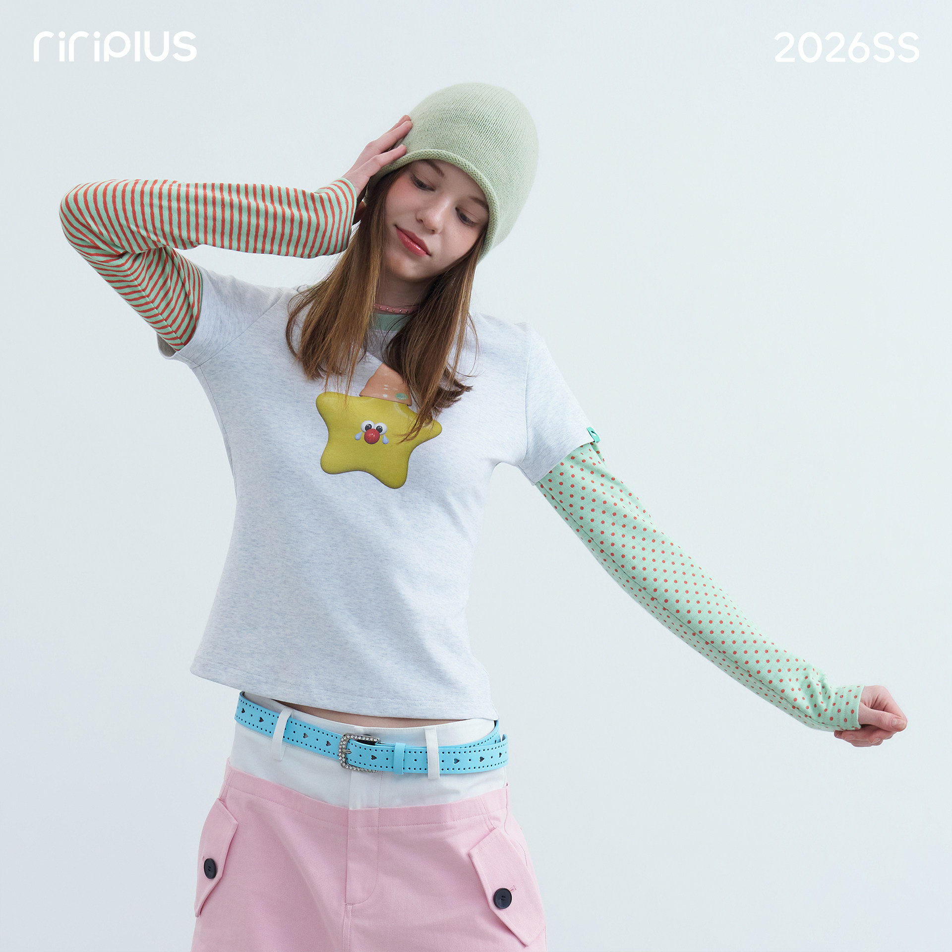 📚 riverstone plus 假两件星星印花圆领长袖T恤女波点条纹打底衫