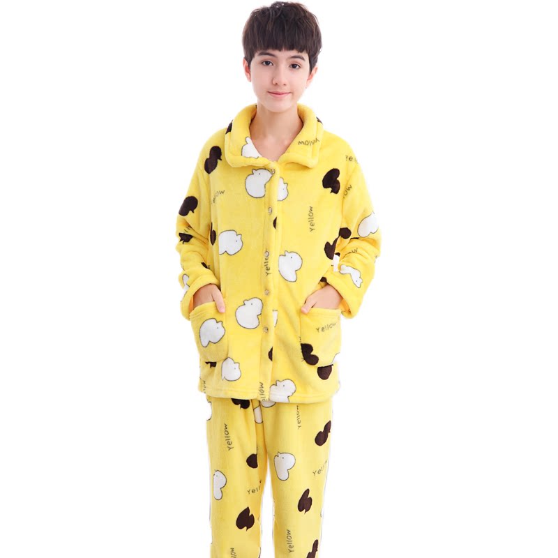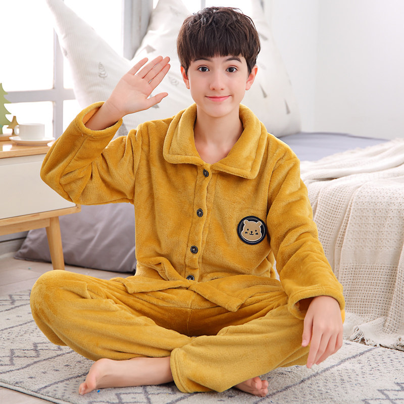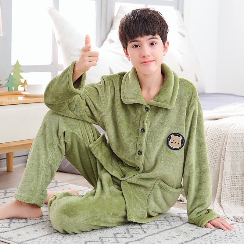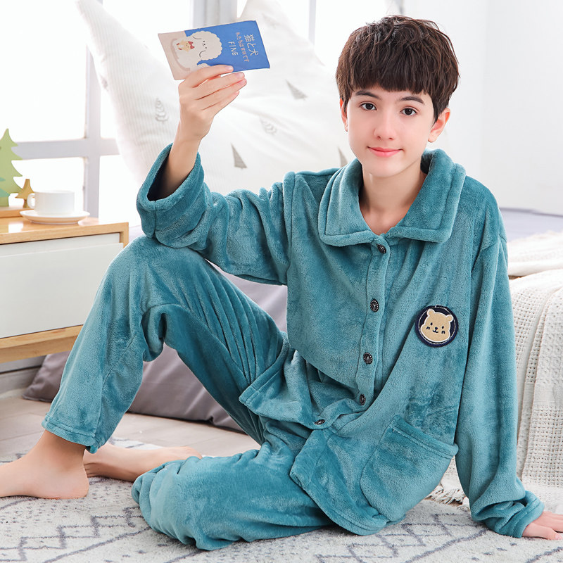 📚 秋冬季青少年珊瑚绒睡衣男生男孩大童法兰绒男童加厚款家居服套装