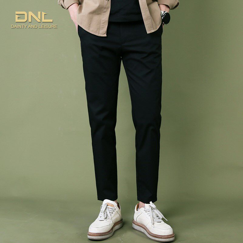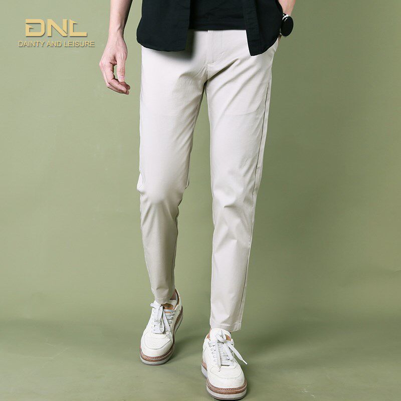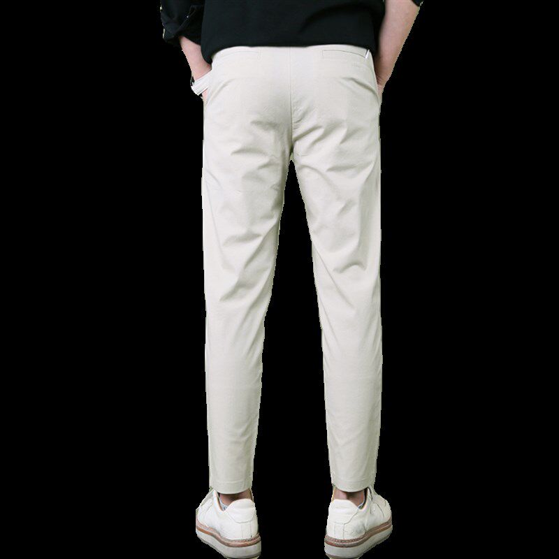 📚 夏季杏色九分裤男修身小脚薄款休闲裤弹力百搭矮个子纯棉老公裤子