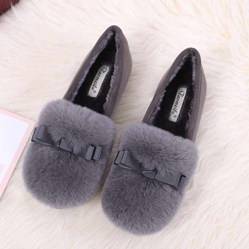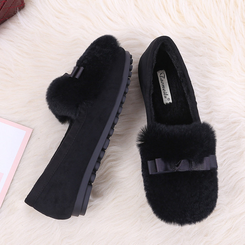 📚 秋冬韩版兔毛豆豆鞋女加绒厚底保暖棉瓢鞋平底单鞋大码女鞋41-43