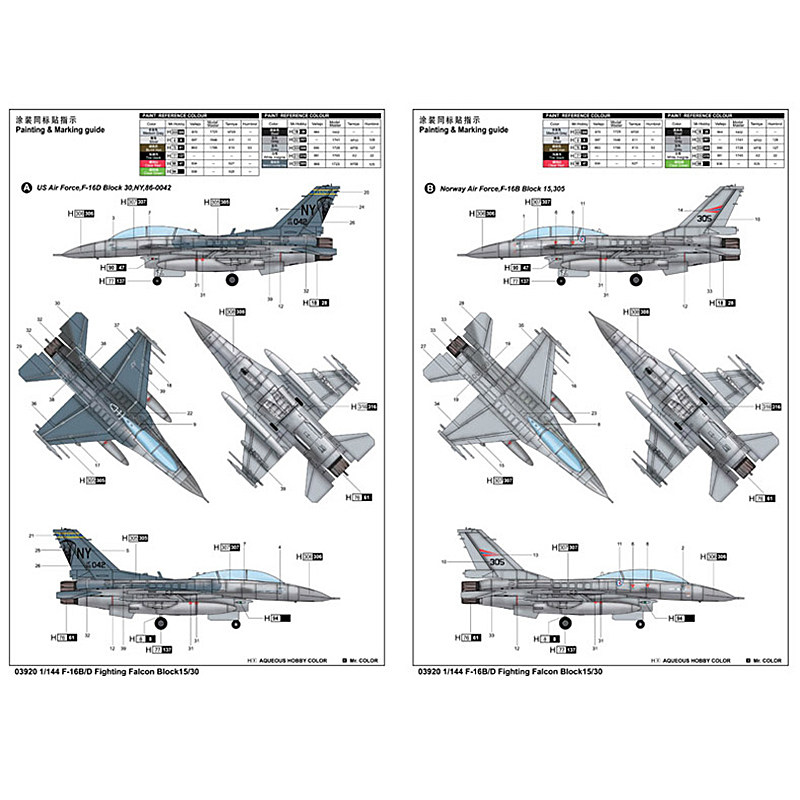 📚 5D模型 小号手模型 03920 1/144 美国F-16B/D战隼战斗机