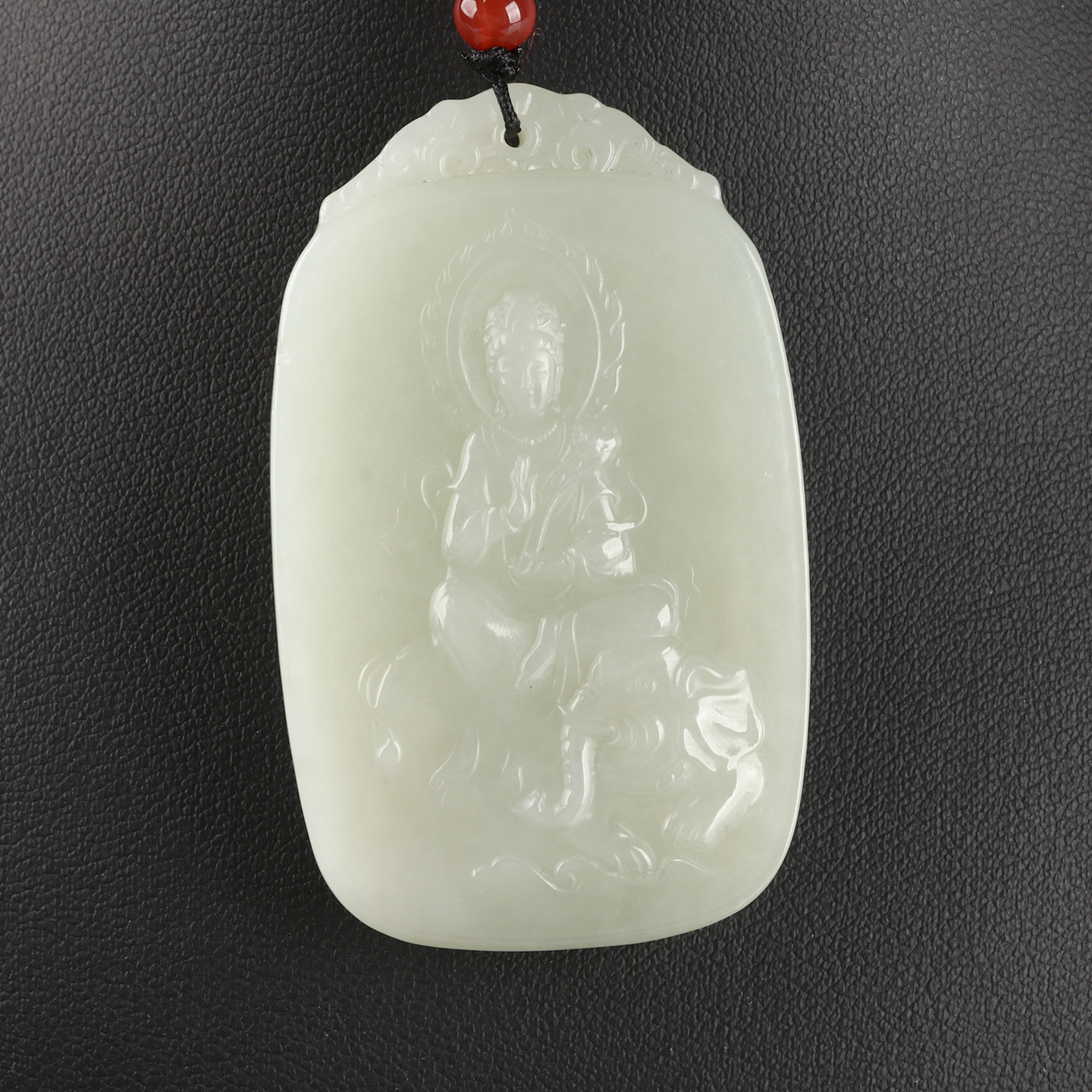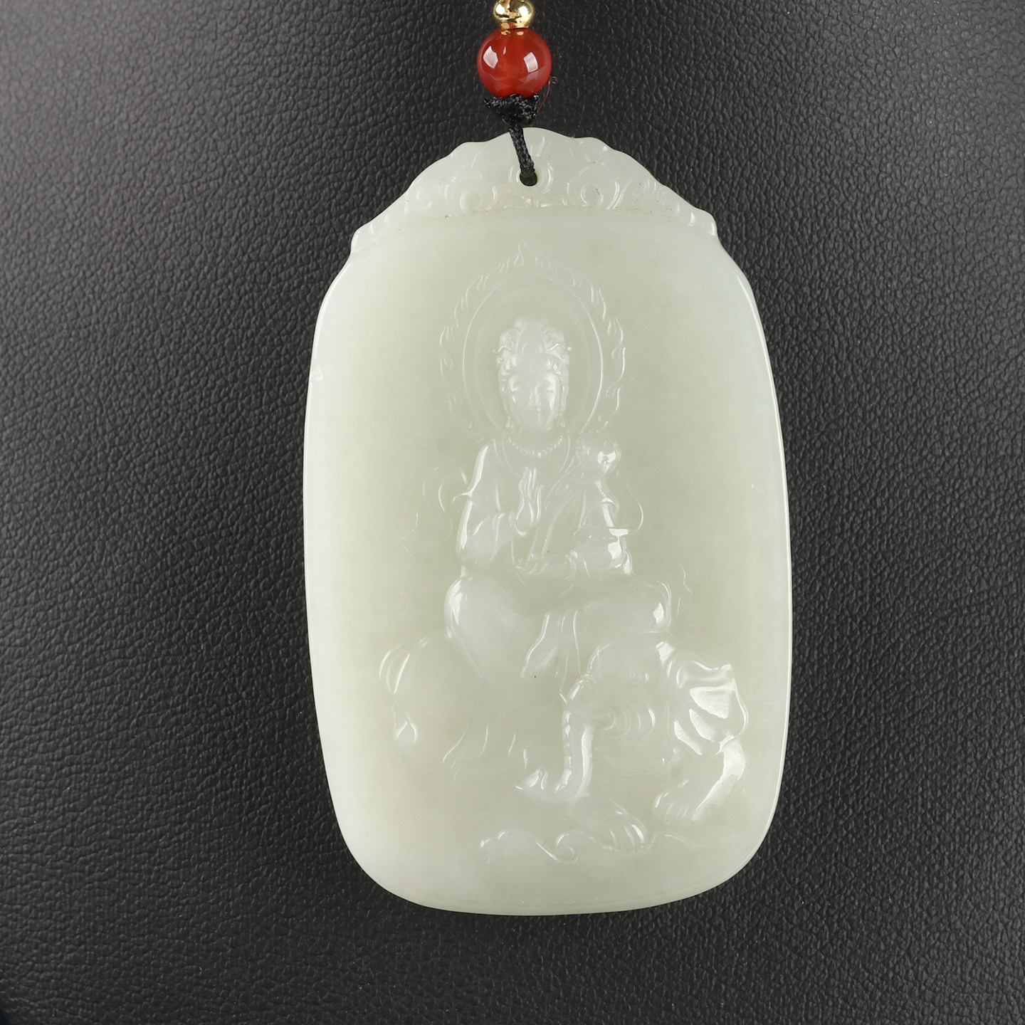 📚 欧说珠宝精致44.62克吉祥如意和田玉精雕普贤菩萨吊坠男女同款