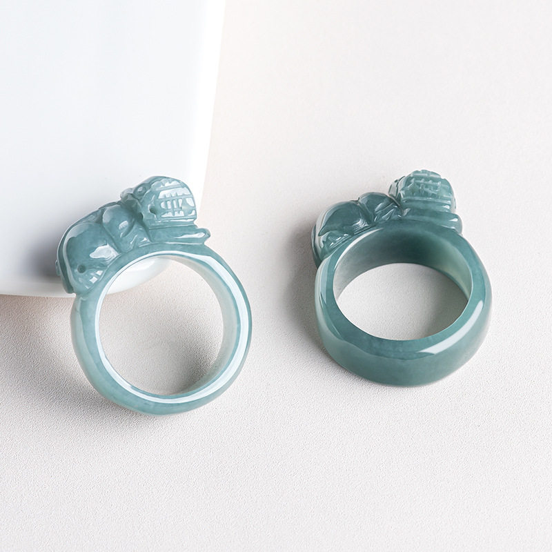📚 正品天然A货保真翡翠蓝水貔貅扳指玉石戒指大气皮丘男女指环手饰