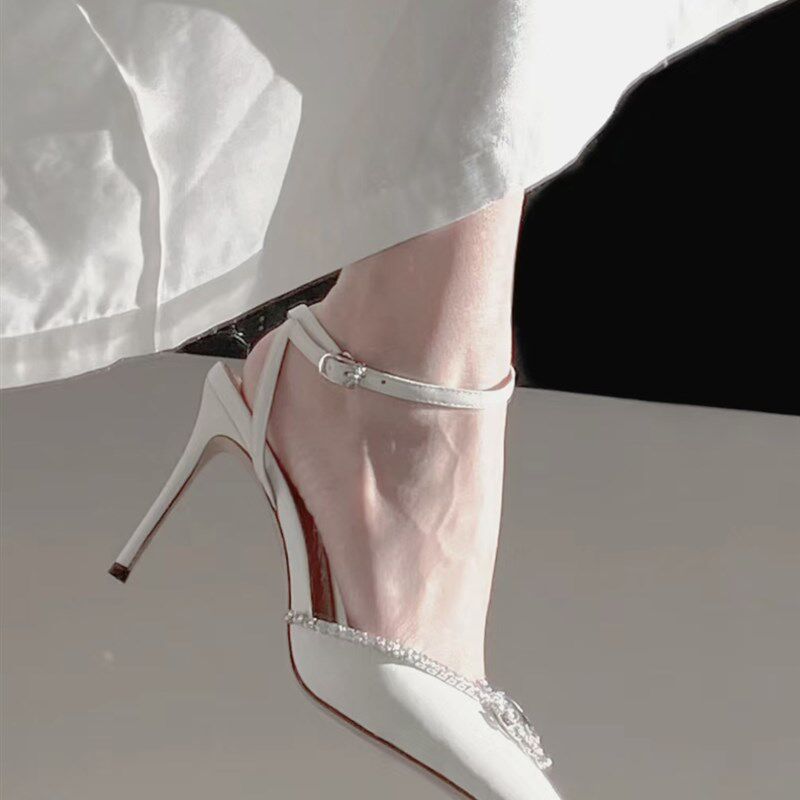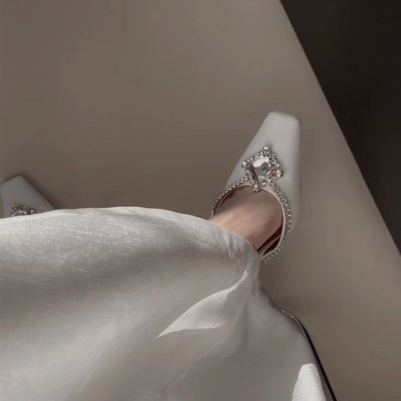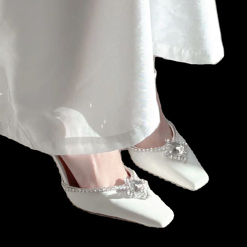 📚 太美了精致显气k质!高跟细跟方头包头水晶水钻法式婚鞋凉鞋女
