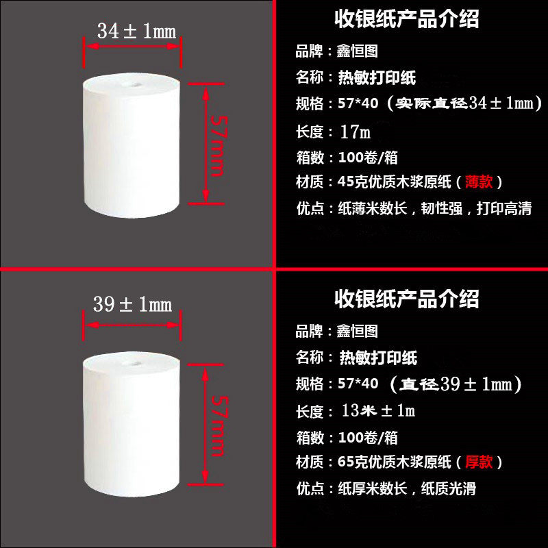 📚 57x40热敏收银纸商超餐饮收款纸美团外卖打印纸58mm无管芯57*40