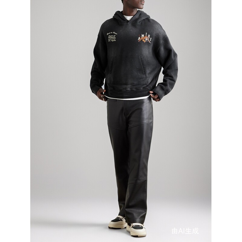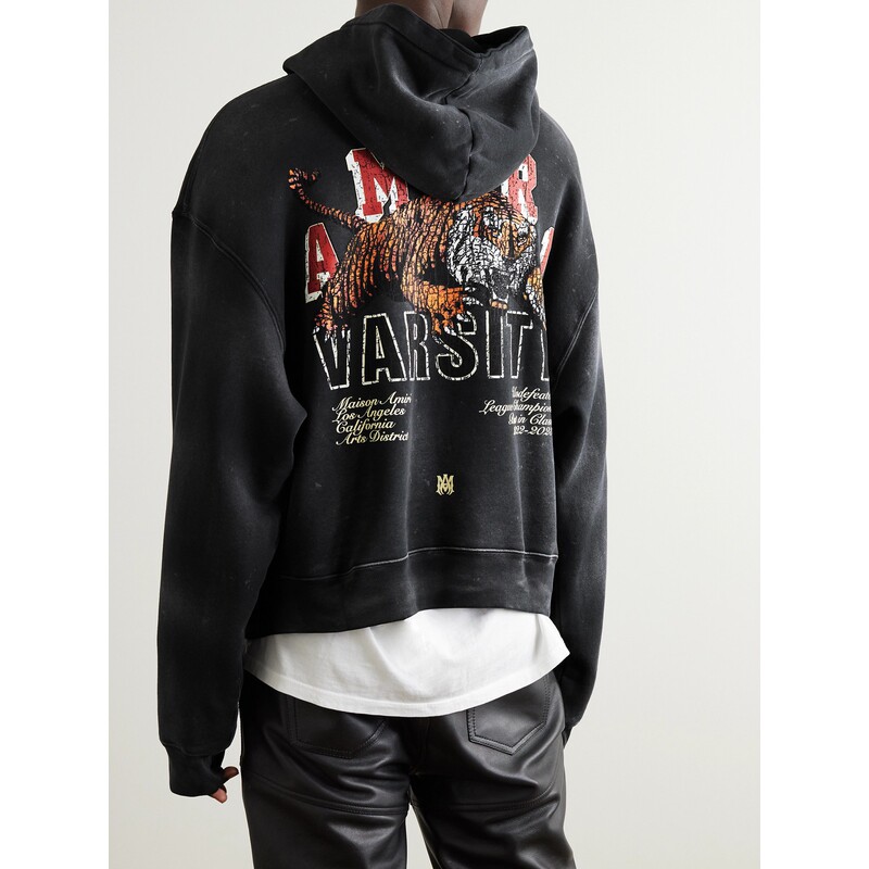 📚 【季末折扣】AMIRI 秋冬男士仿旧品牌标志印花棉质平纹布帽衫