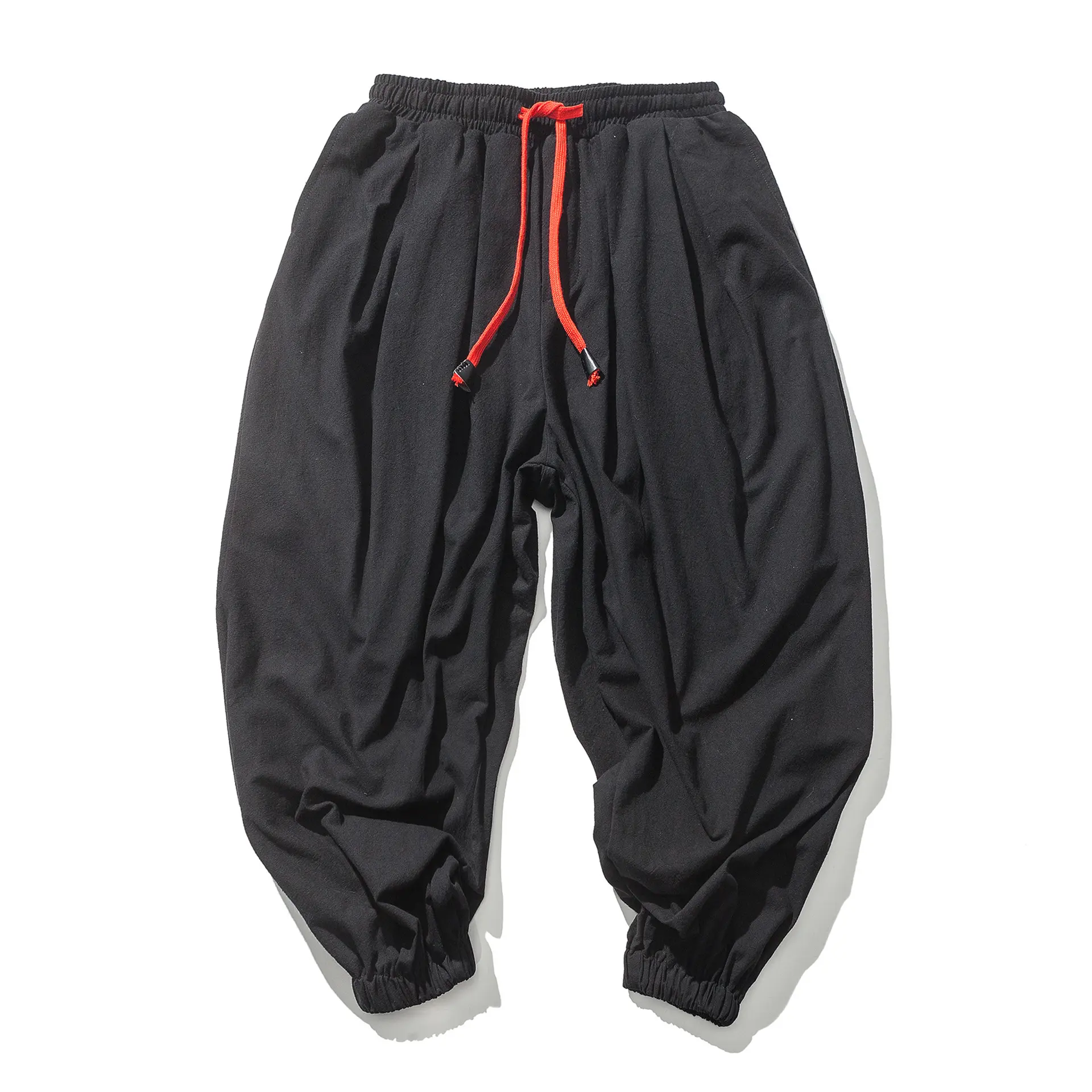 📚 中日系亚麻休闲裤男九分宽松阔腿束脚胖子加肥大码道观裤子现货棉