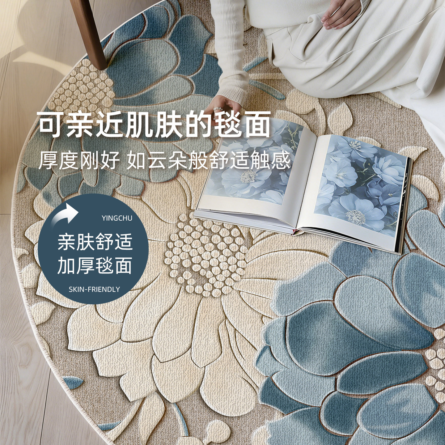 📚 北欧圆形客厅地毯卧室床边毯复古高级沙发茶几毯梳妆台地垫定制
