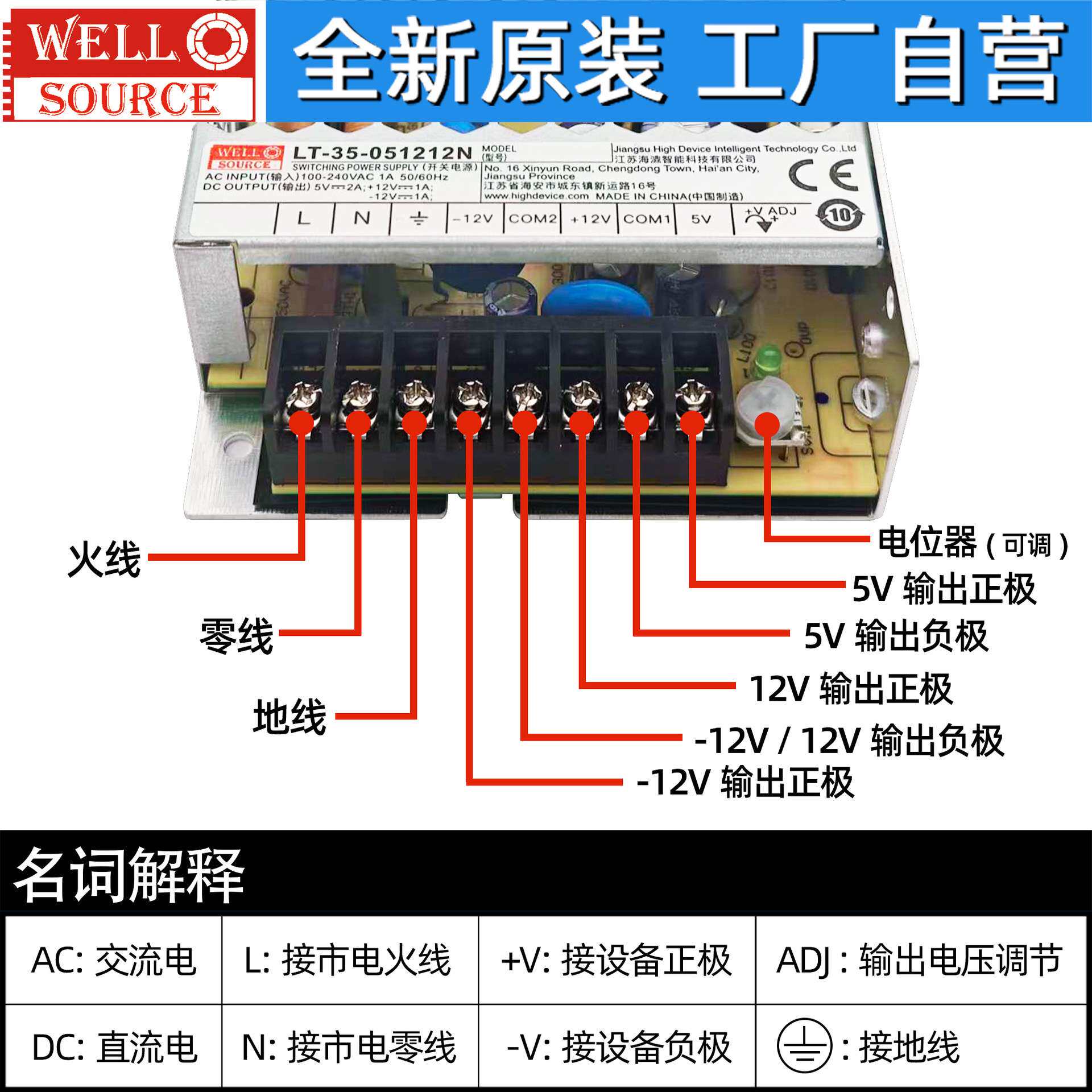📚 WELLSOURCE海濎电源LT-35-051212N交流转直流三路输出5V±12V电源