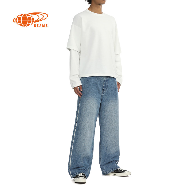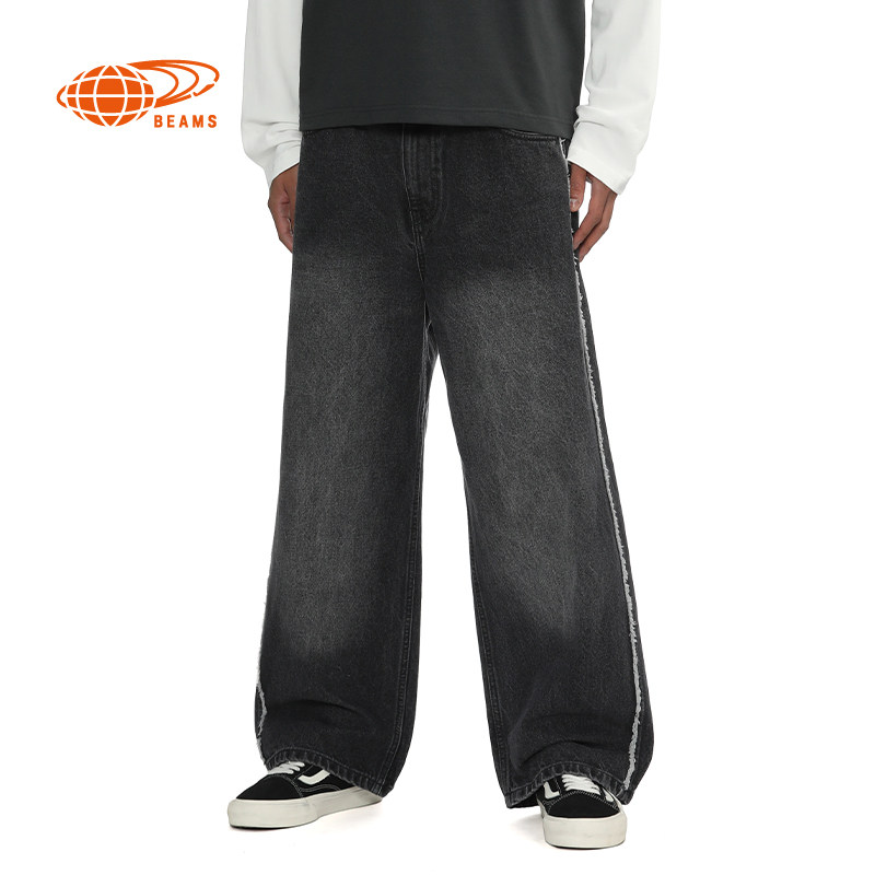 📚 BEAMS男装阔腿裤牛仔裤2025冬季新款复古街潮毛边长裤210082XP