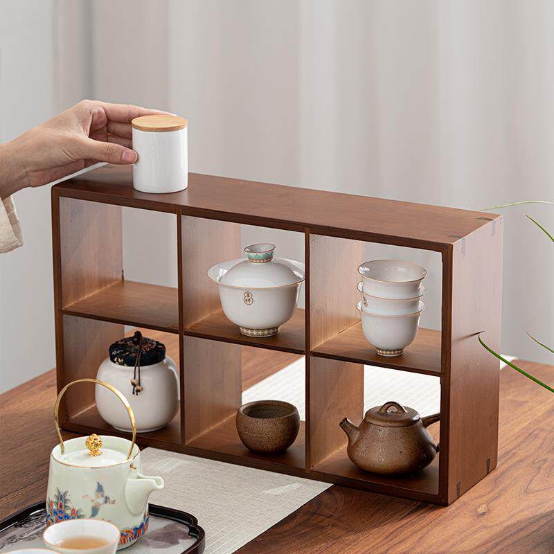 📚 中式桌面小型博置古架制dbg1多宝阁紫砂壶放架子竹茶具茶壶物摆架