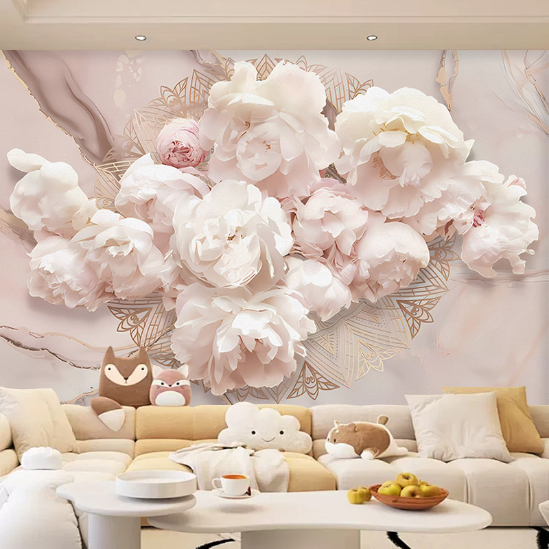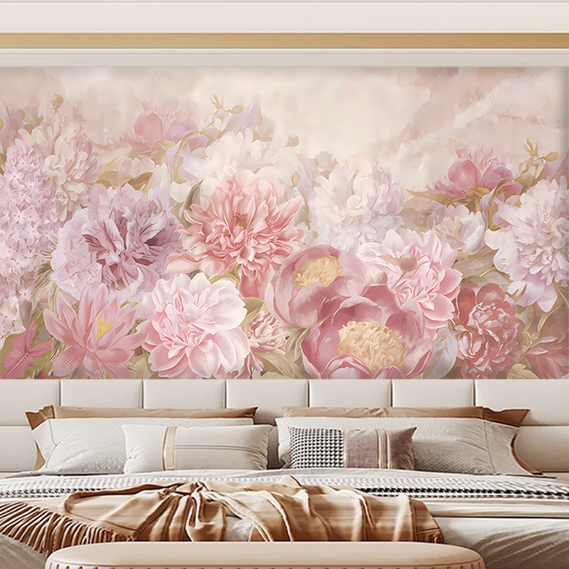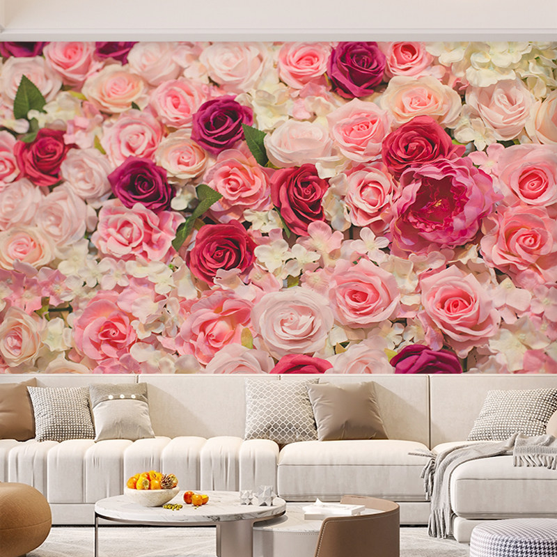 📚 花卉图卧室贴画沙发背景墙温馨贴纸蔷薇花簇自粘防水客厅装饰壁纸