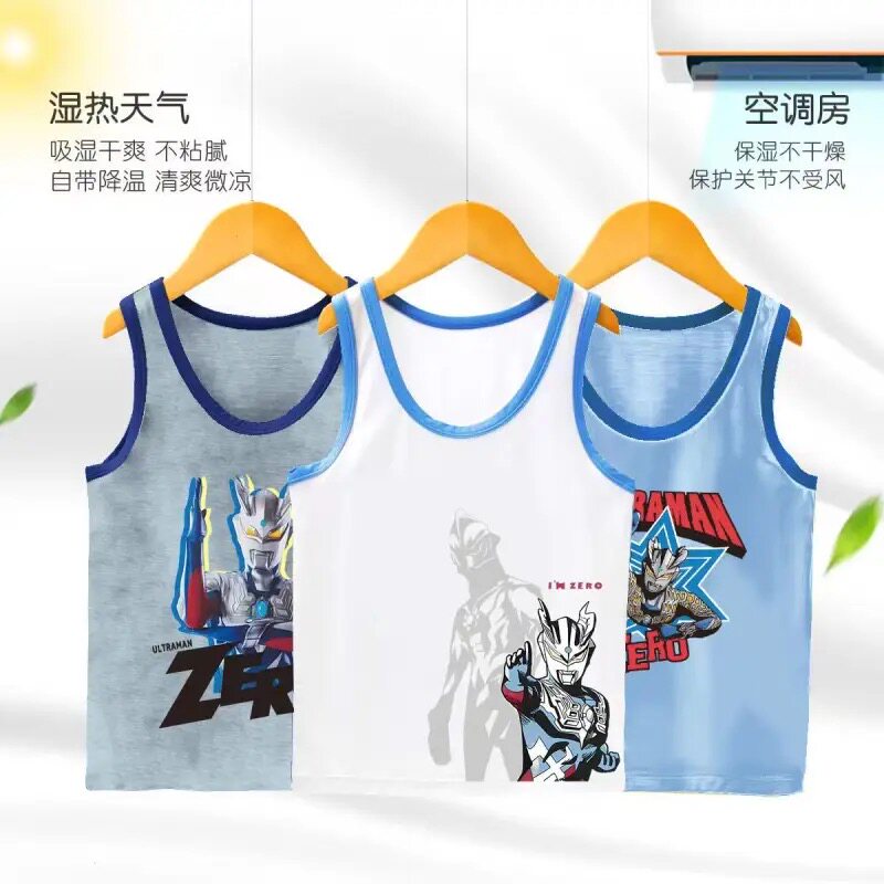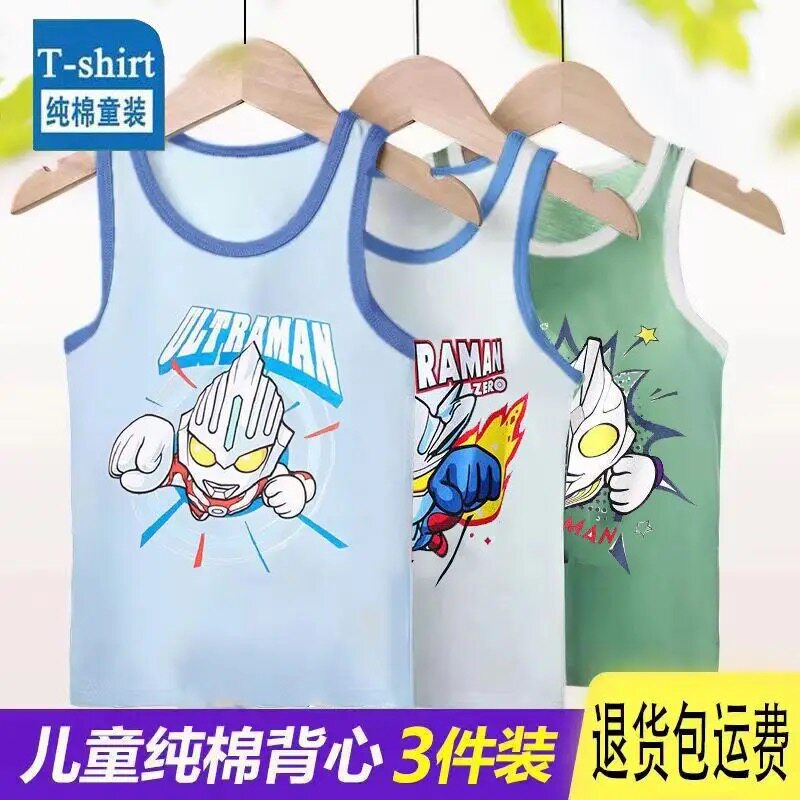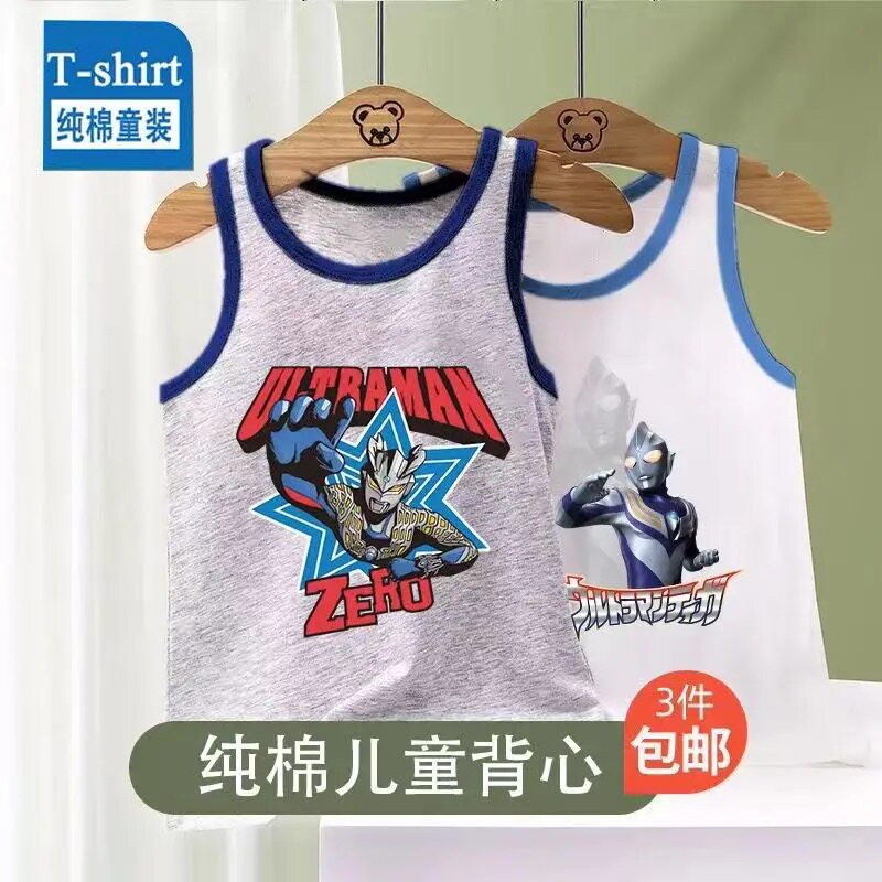 📚 儿童背心奥特曼男童夏季薄款纯棉无袖T恤男孩外穿宝宝打底上衣帅