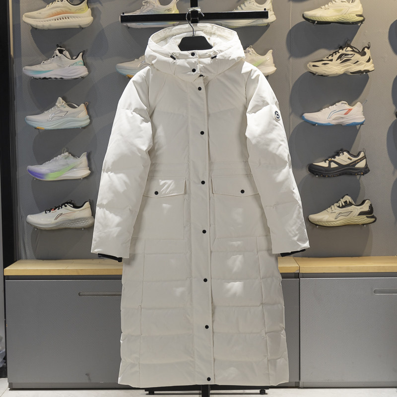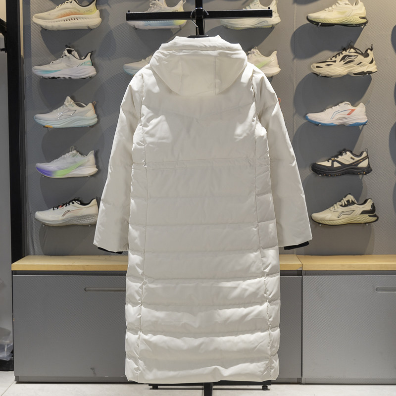 📚 李宁长款羽绒服女子2025冬季修身80%鸭绒保暖过膝连帽外套AYMV232