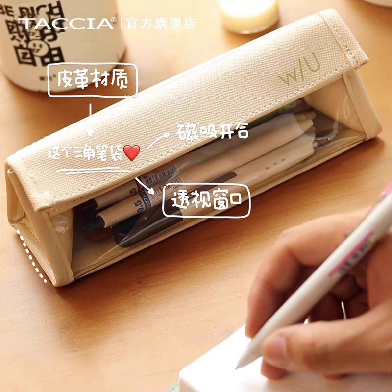 📚 TACCIA仲林 日本WU系列PU笔袋ins日系文具盒笔袋马卡龙色铅笔盒透明笔袋大容量高颜值文具笔袋学生白领收纳袋