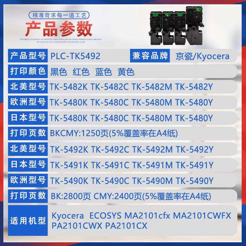 📚 适用TK5492京瓷MA2101cfx粉盒PA2101CWX打印机墨盒碳粉TK5490墨粉