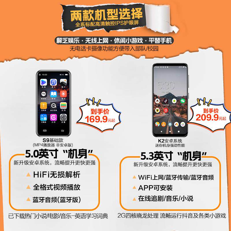 📚 mp4全面屏wifi上网蓝牙mp5安卓播放器mp6可下载app迷你mp3插卡mp7