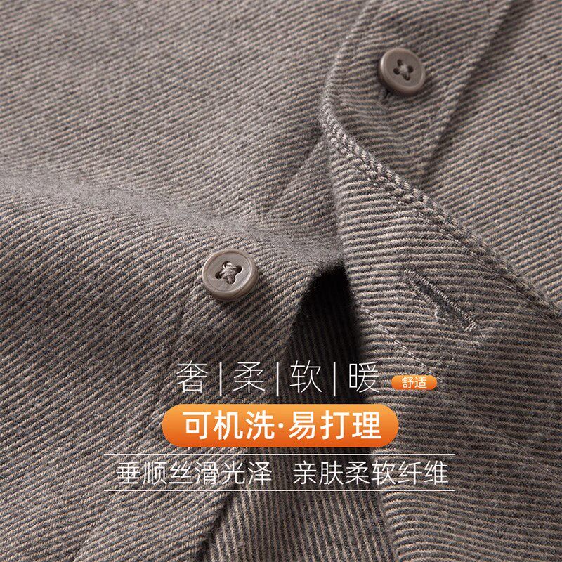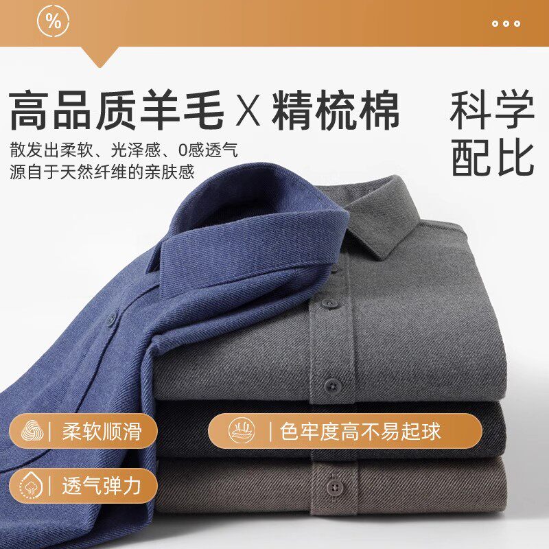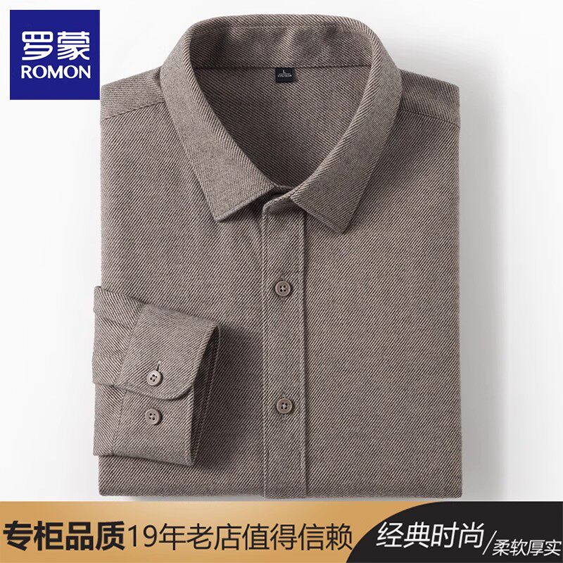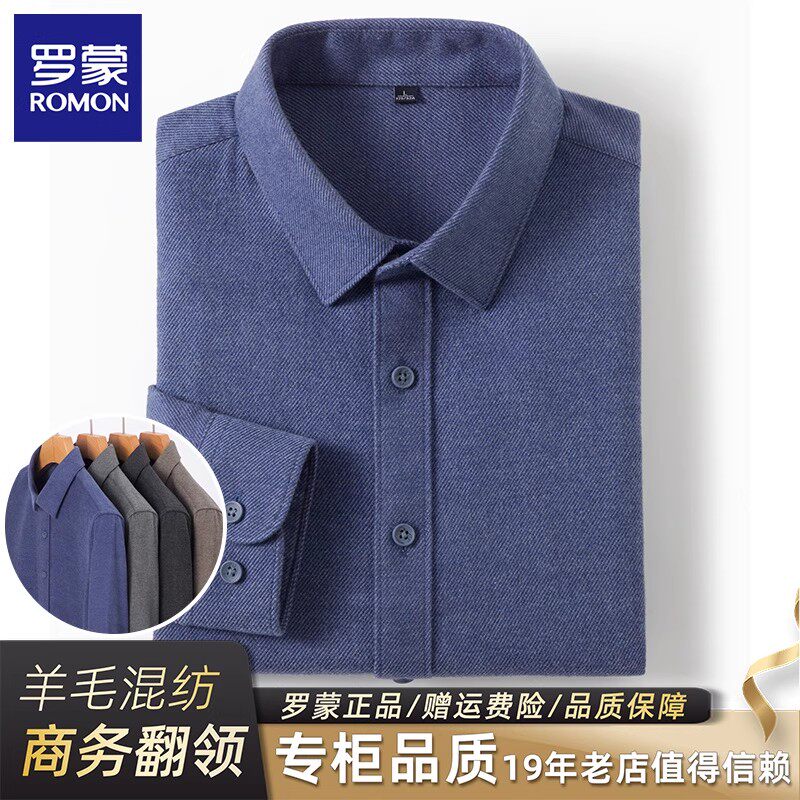 📚 【可机洗绵羊毛】罗蒙男士长袖衬衫中年商务职业正装磨毛厚款衬衣