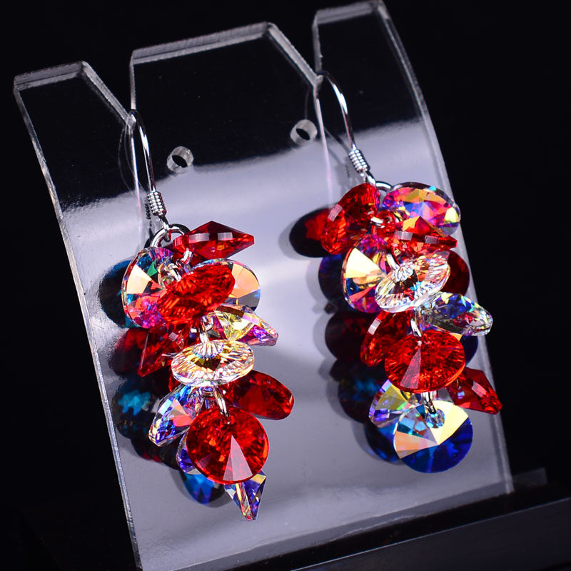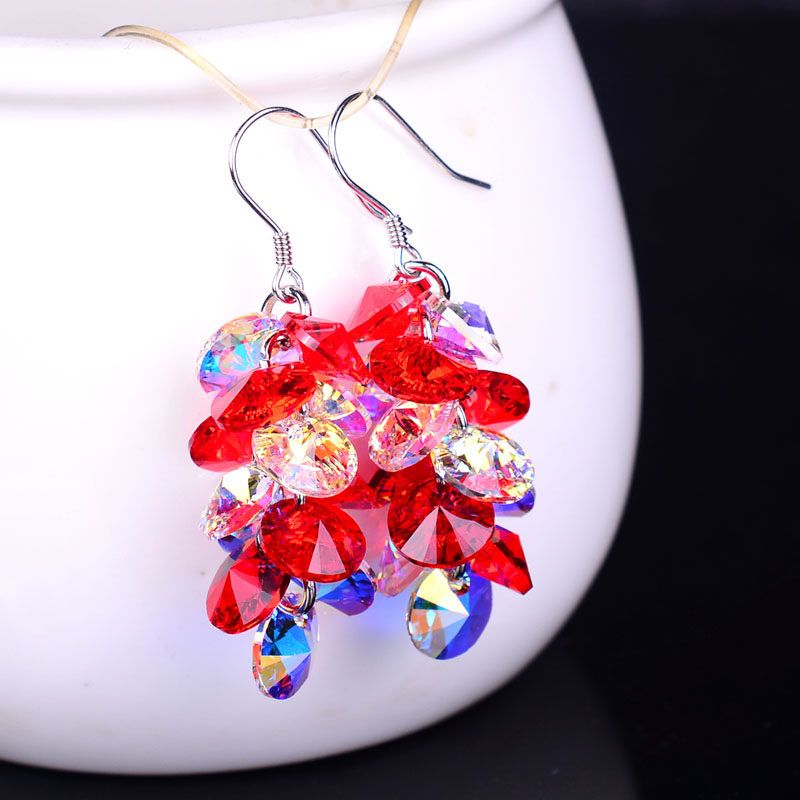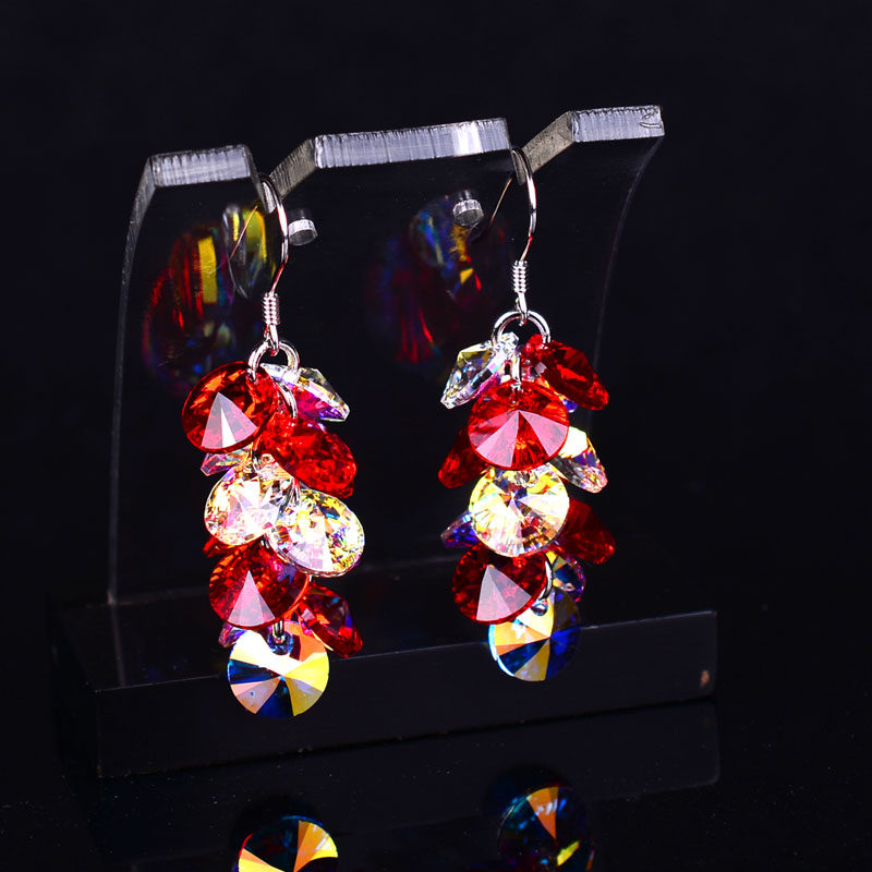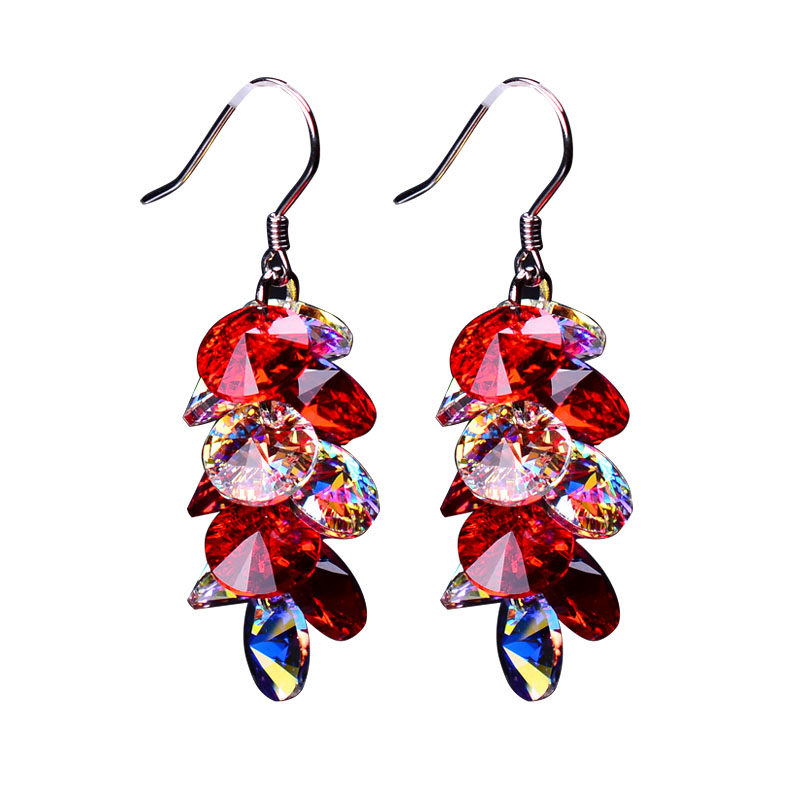 📚 多层葡萄耳环奥地利水晶耳钩925纯银防过敏风格本命年礼物包邮
