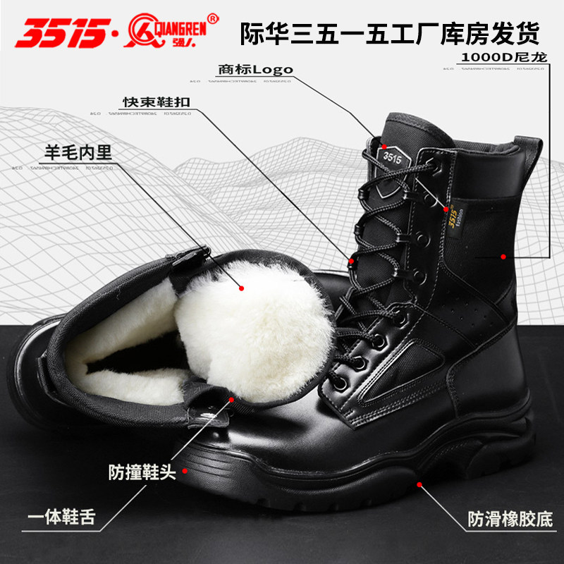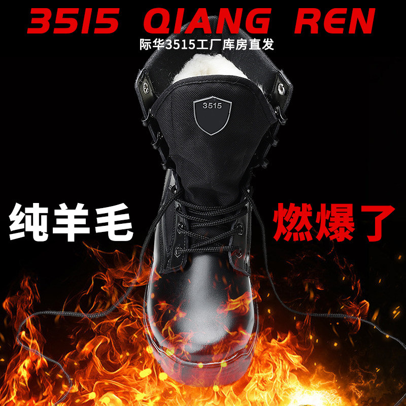 📚 3515强人男新款冬季羊毛靴加绒保暖系带加厚雪地靴棉鞋短靴防寒靴