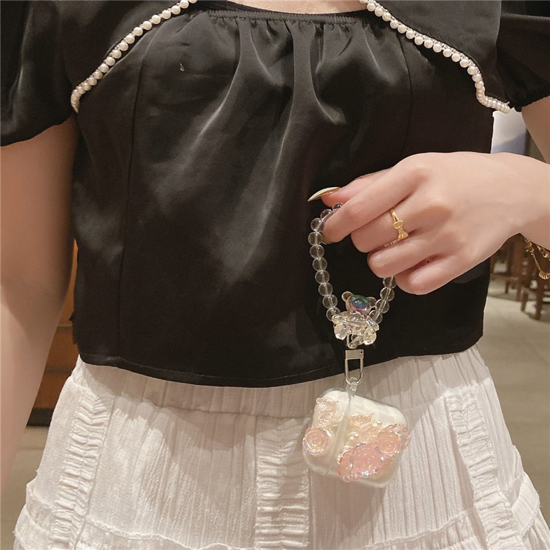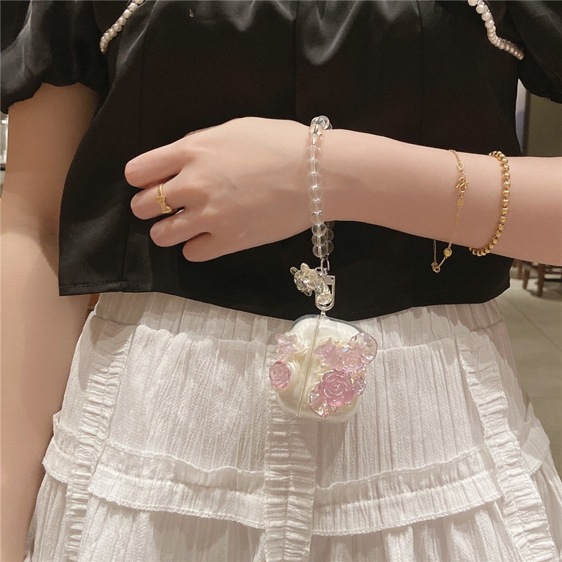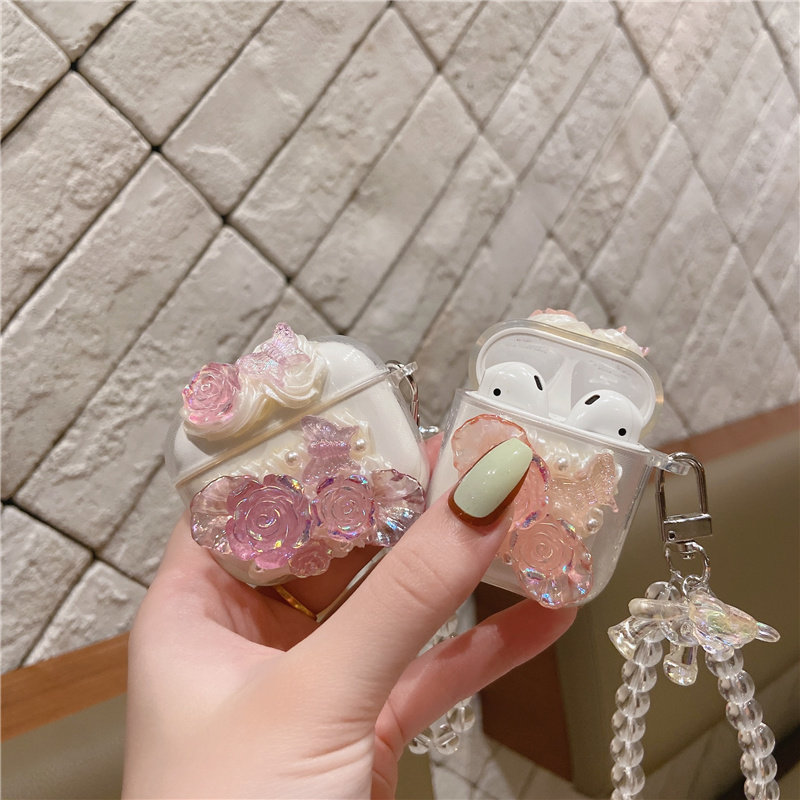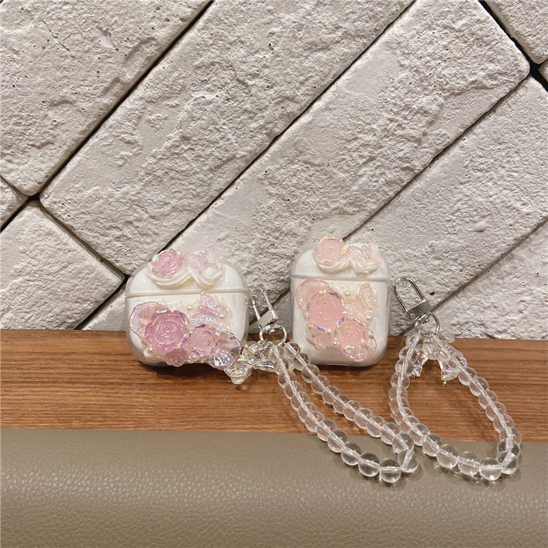 📚 法式玫瑰花蝴蝶适用Baseus倍思w042023蓝牙耳机壳wm05保护套e3创意M2