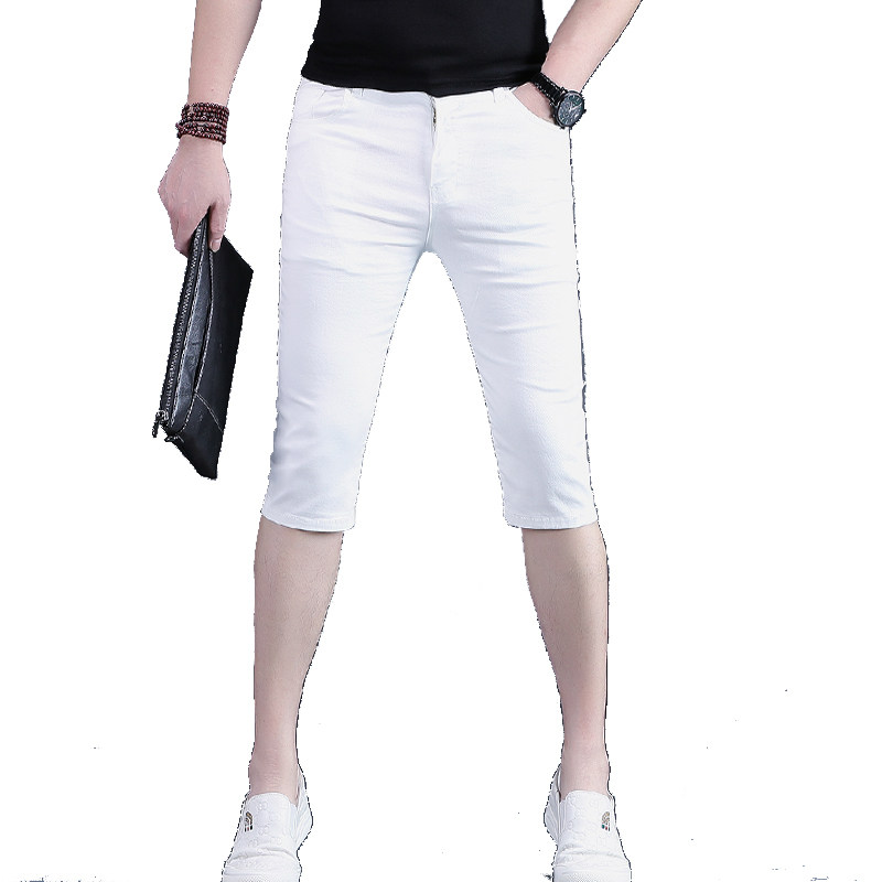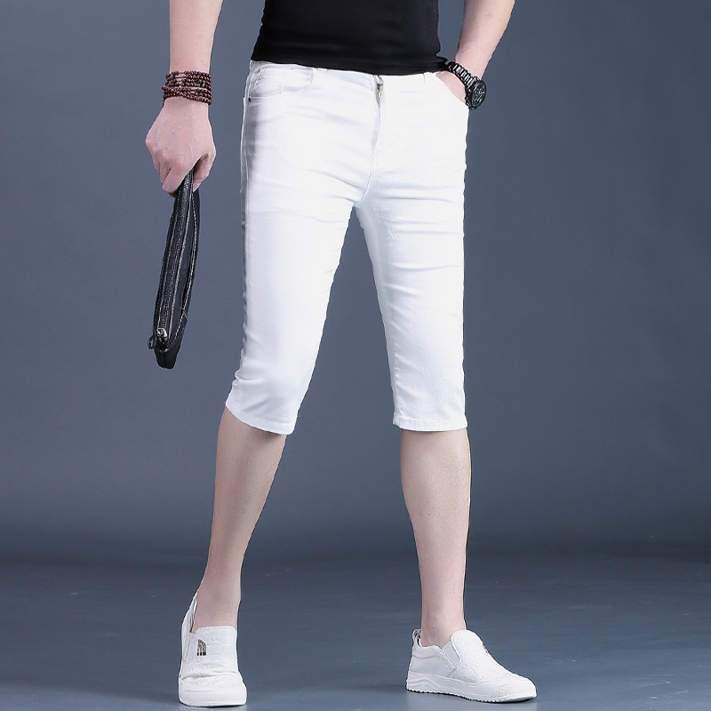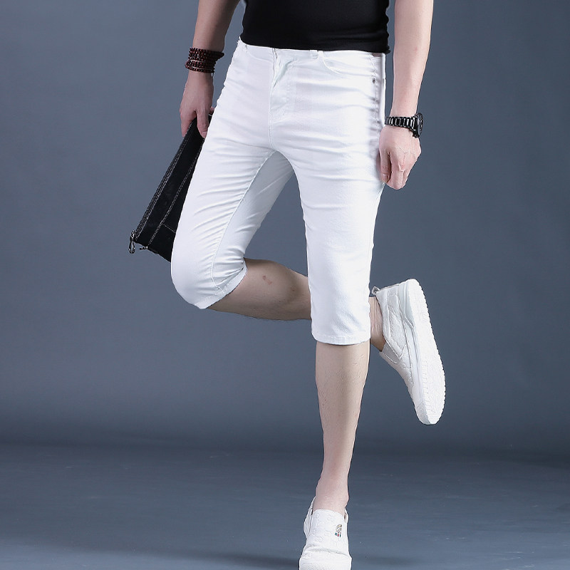 📚 夏季裤子男牛仔裤男士七分裤潮流修身中裤弹力小脚7分男裤子白色