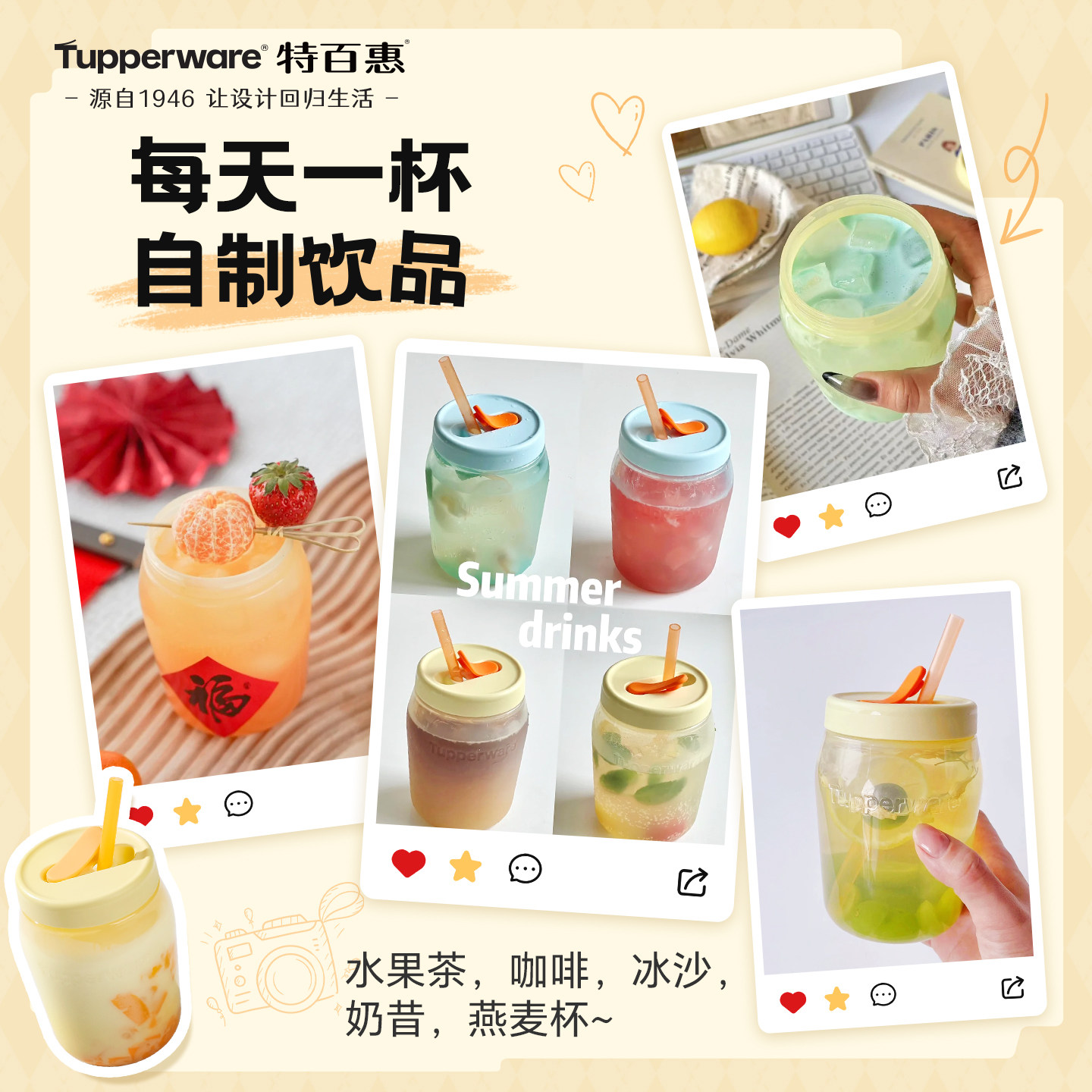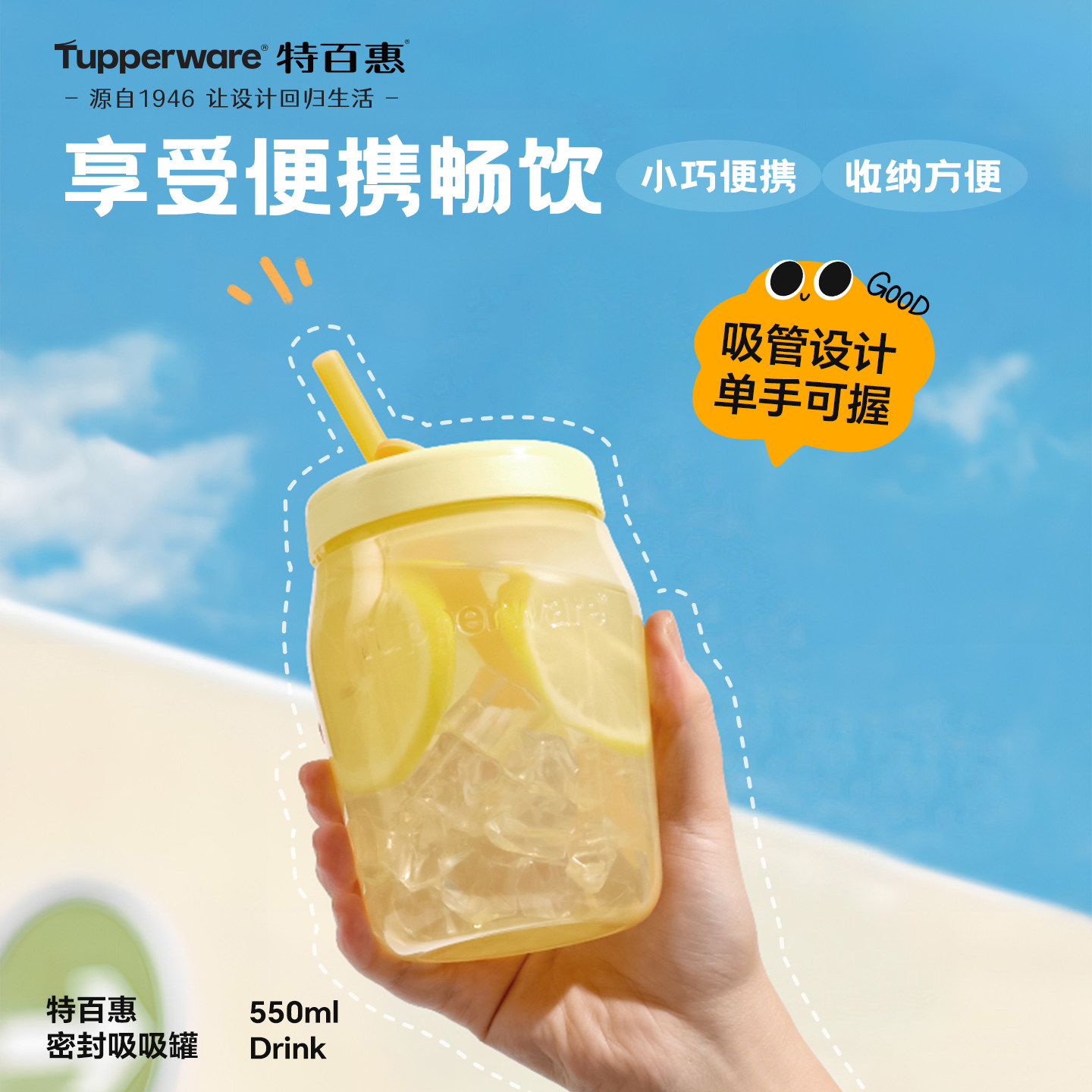 📚 特百惠吸吸罐550ml自制奶昔咖啡杯高颜值可爱密封圆罐带吸管水杯