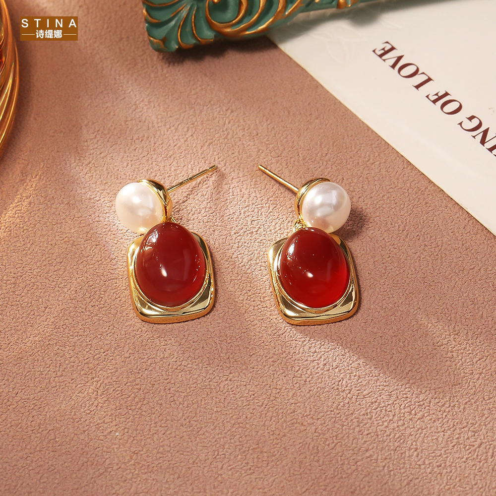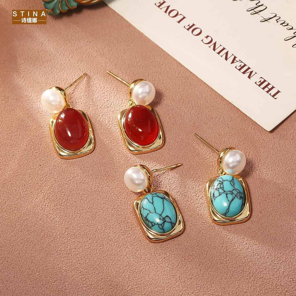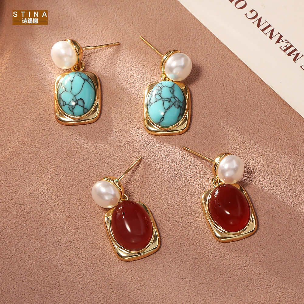 📚 STINA复古气质民族风蓝色耳钉小众设计石耳环高级感精致百搭耳饰
