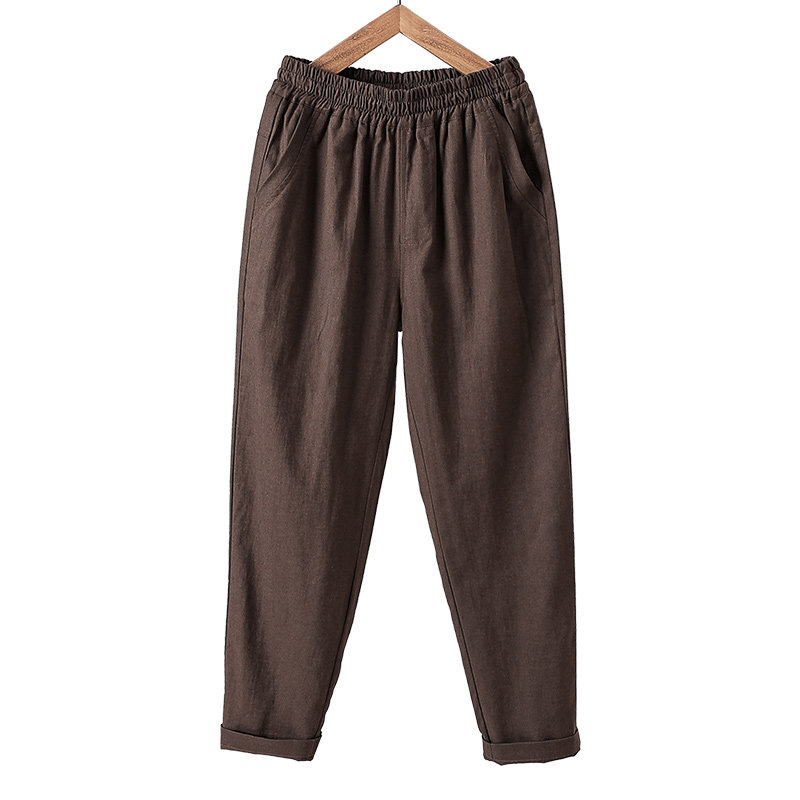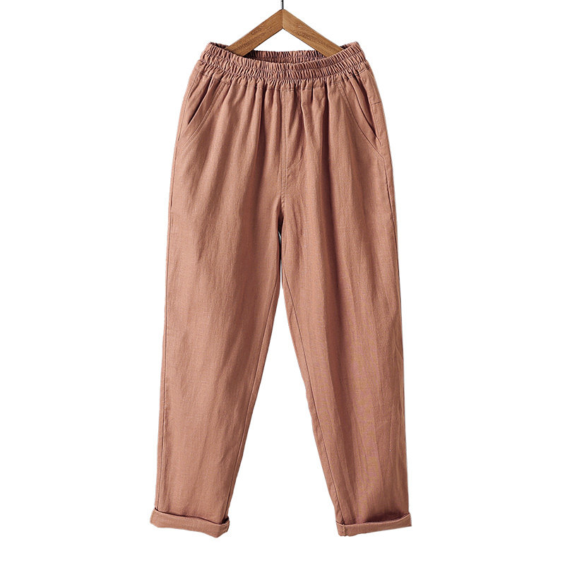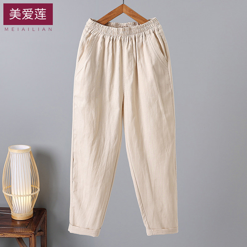 📚 棉麻萝卜裤子女哈伦裤透气高腰休闲亚麻九分裤新款大码宽松显瘦