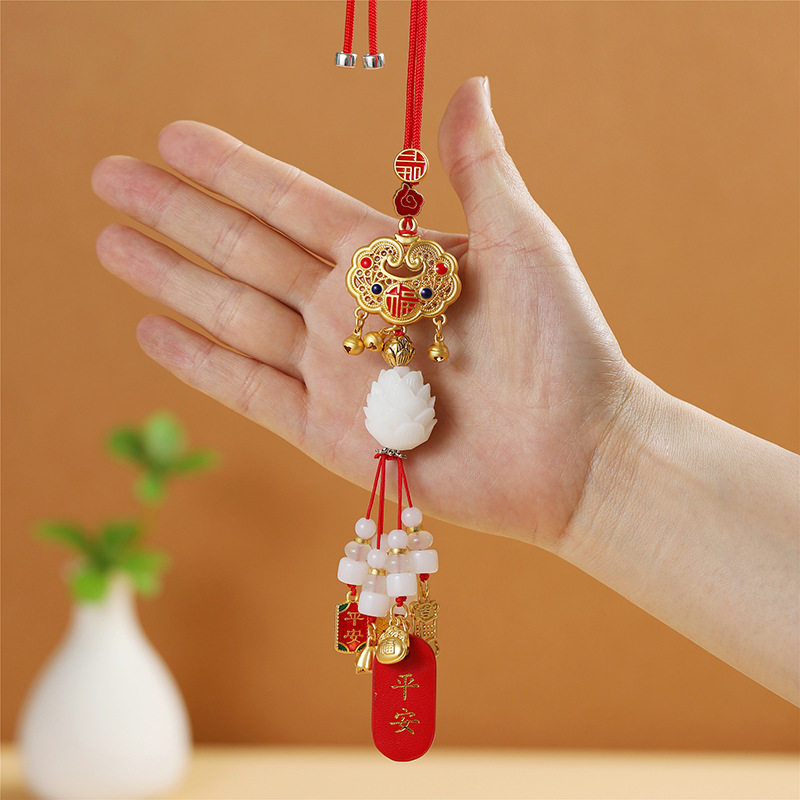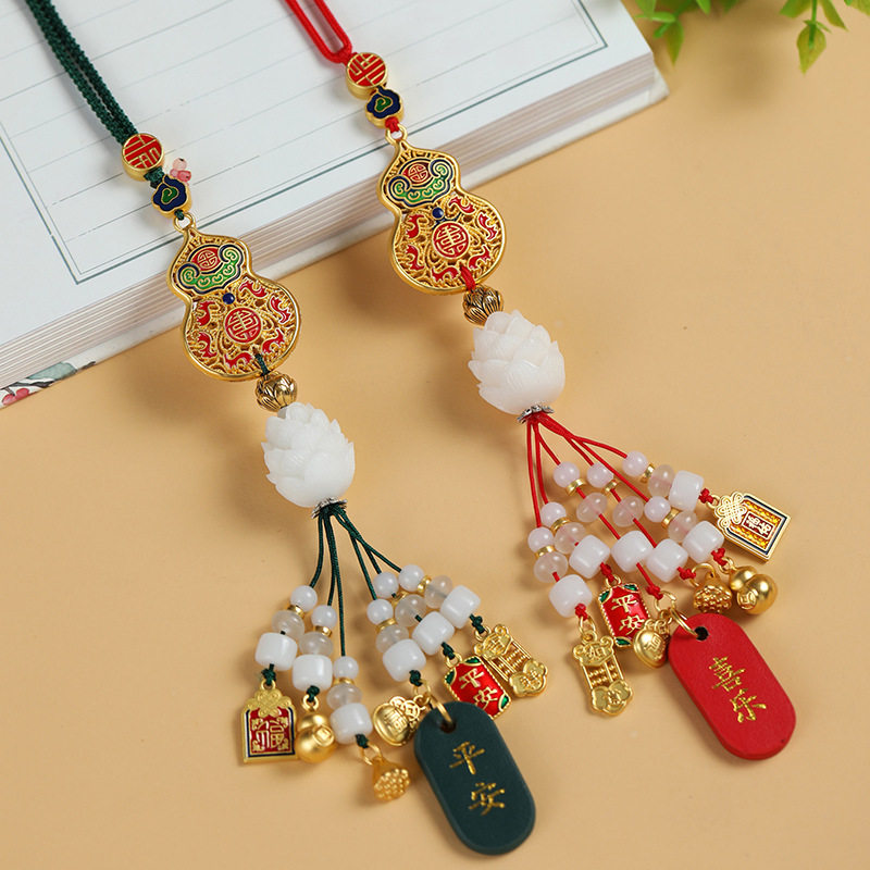 📚 汽车挂件车内吊饰平安锁合金镂空葫芦高档景泰蓝一路平安古法金
