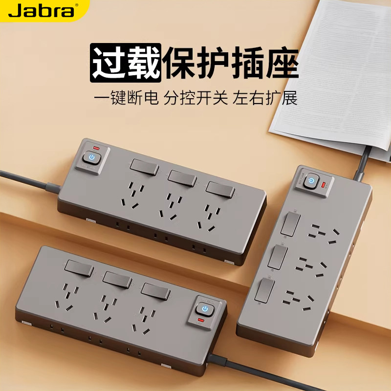 📚 扩展插座明装一转多插排过载保护五孔转换器带线插头分控开关排插