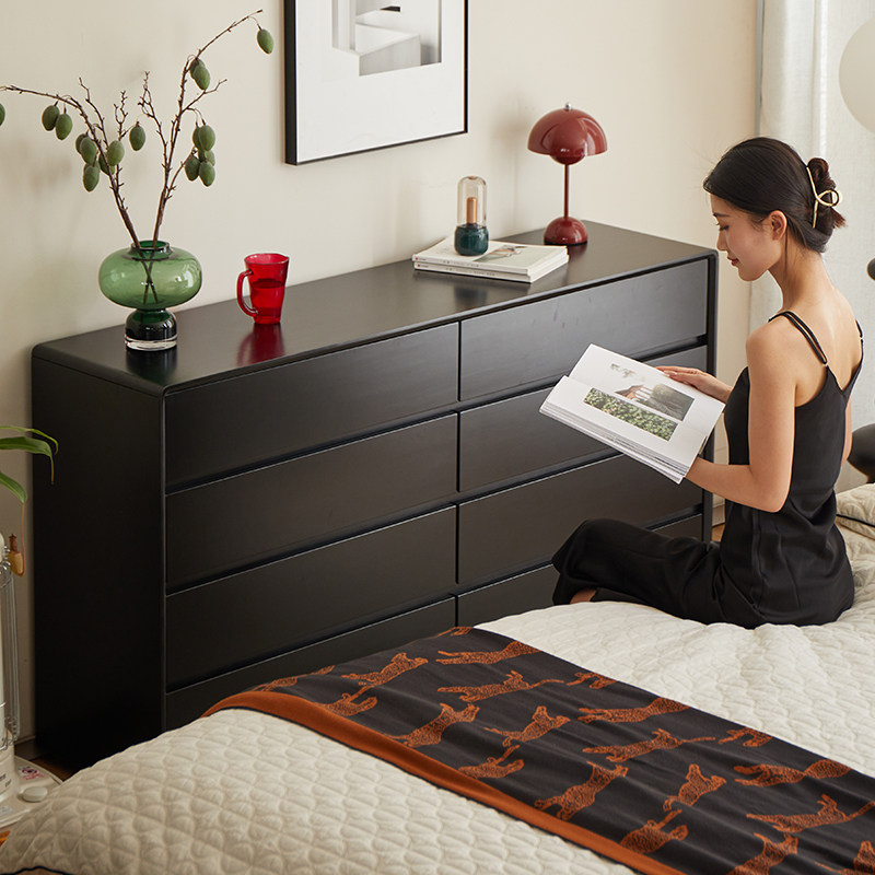 📚 实木五斗柜家用卧室黑胡桃储物柜小户型地柜八斗柜胡桃色实木斗柜
