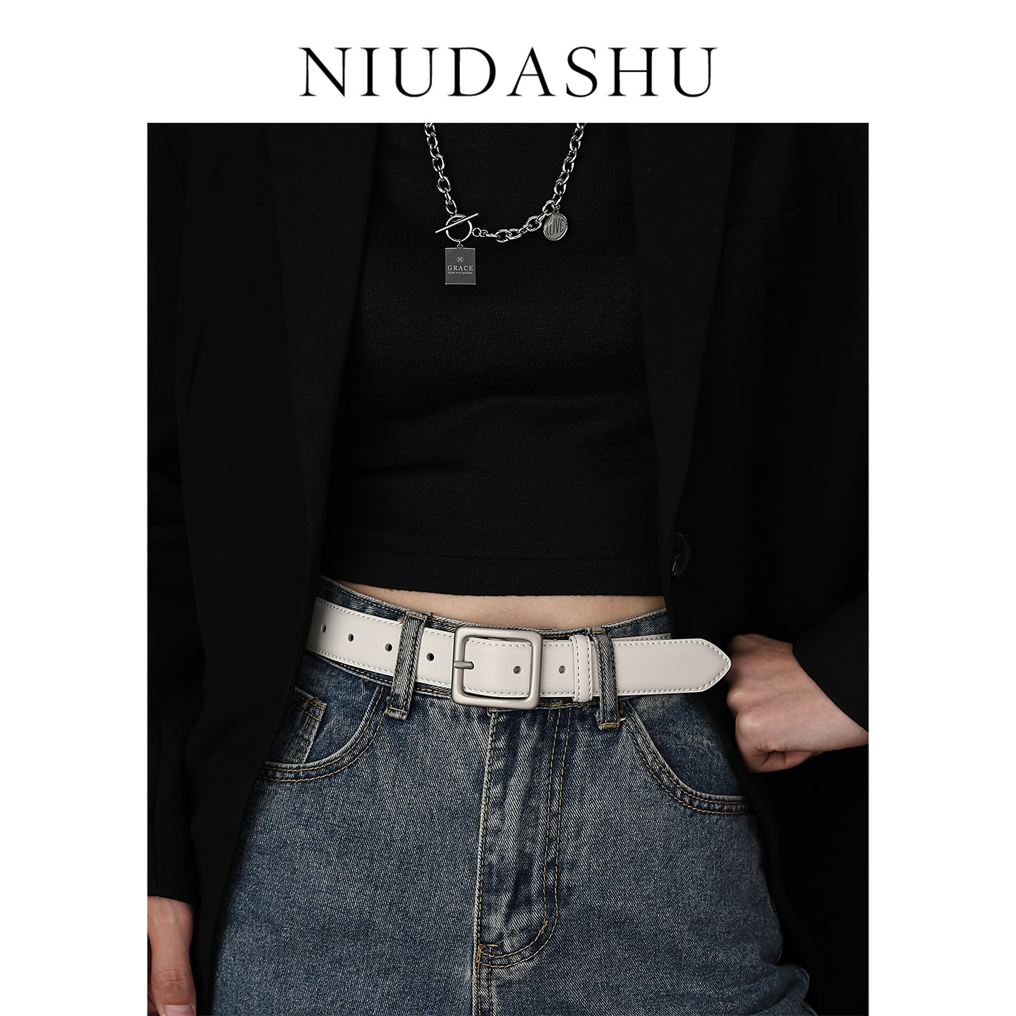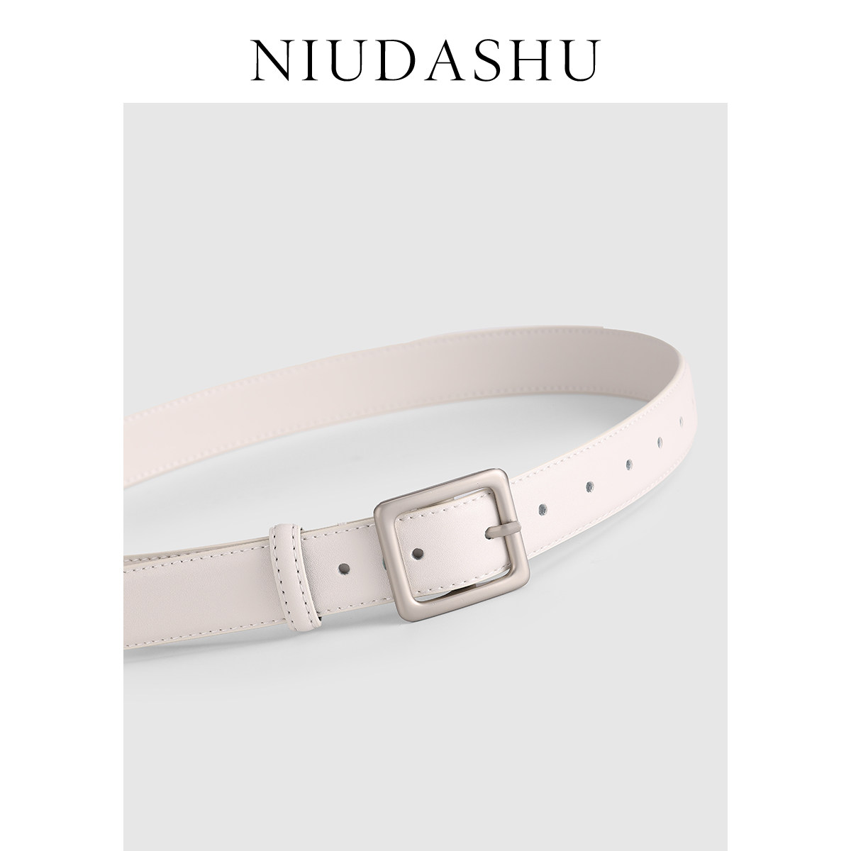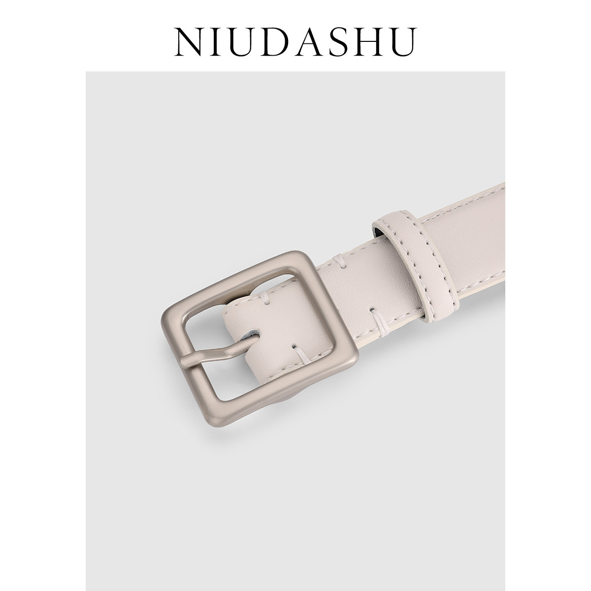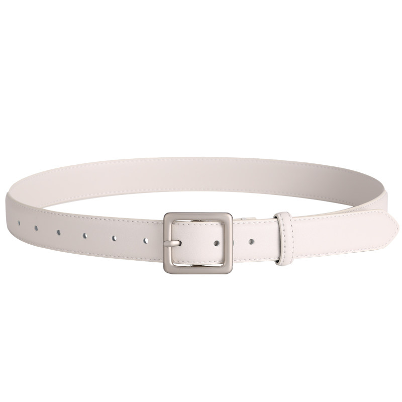 📚 皮带女真皮装饰简约小众设计感银色针扣配牛仔裤腰带女白色宽显瘦