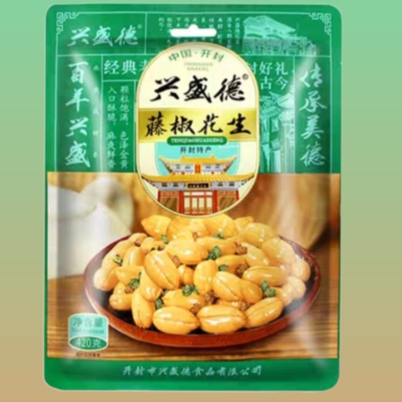 📚 河南特产开封兴盛德花生藤椒麻辣五香花生米420g大袋坚果零食油炸
